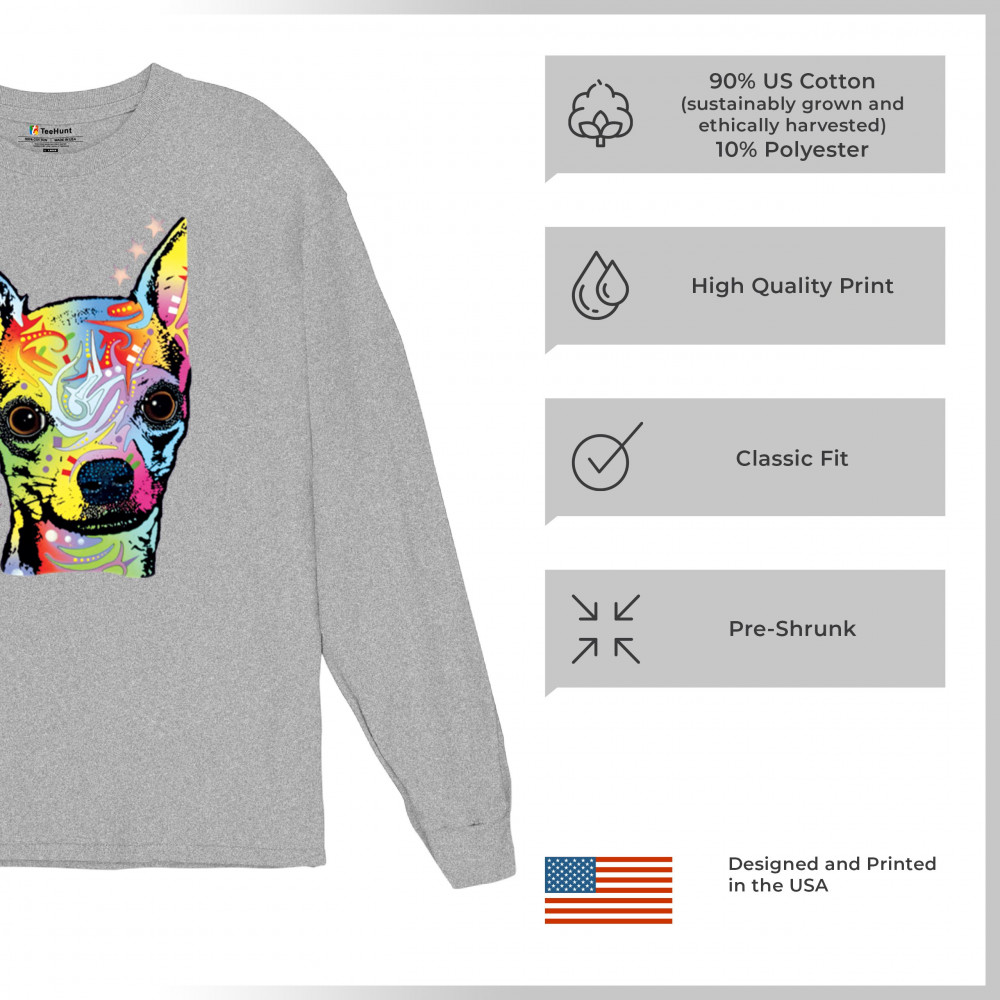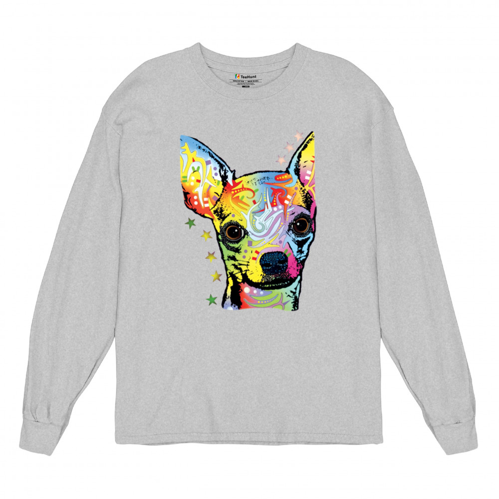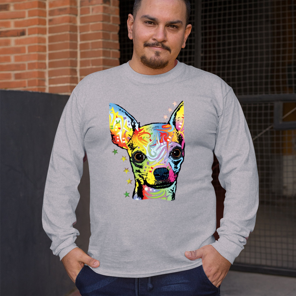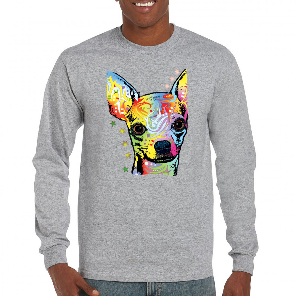 DEAN RUSSO CUTE CHIHUAHUA long sleeve t-shirt neon colorful small dog pet gray