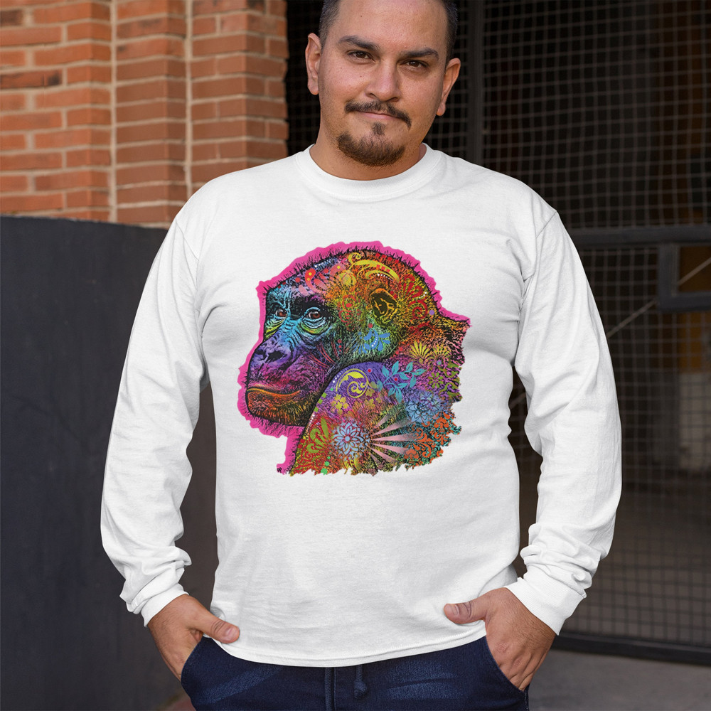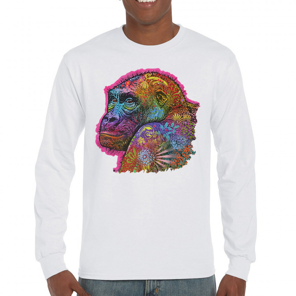 DEAN RUSSO CUTE GORILLA long sleeve t-shirt colorful neon silverback ape art white