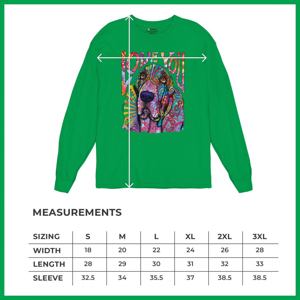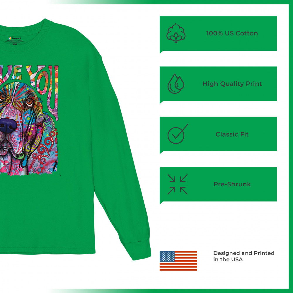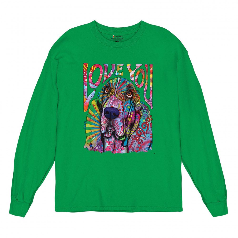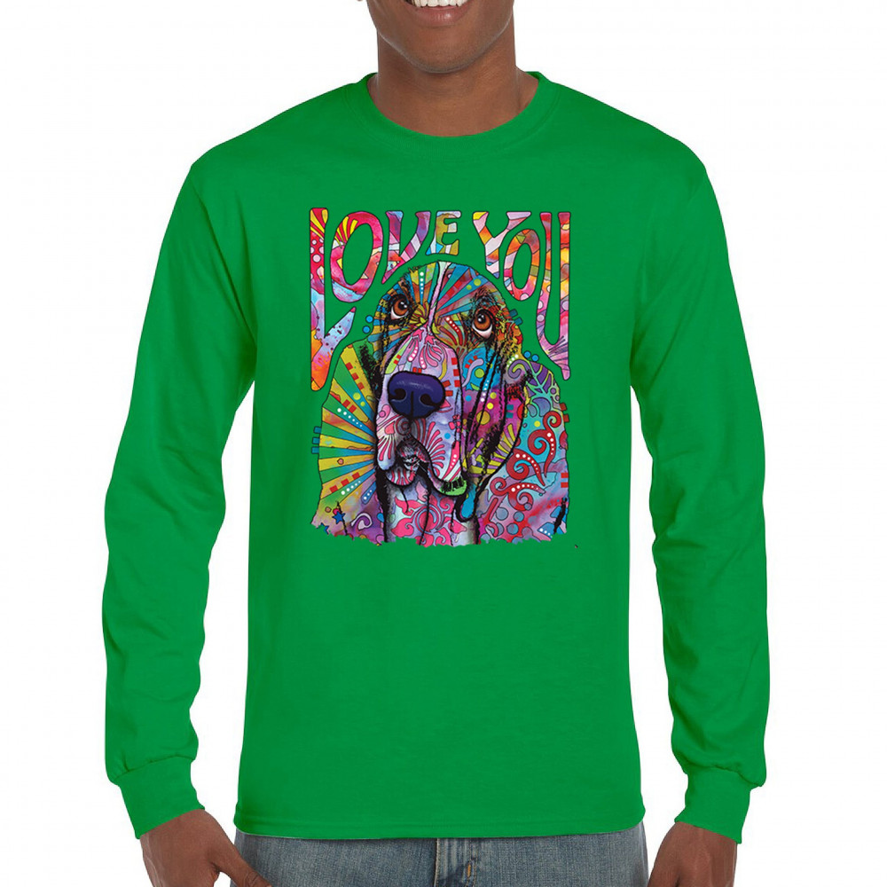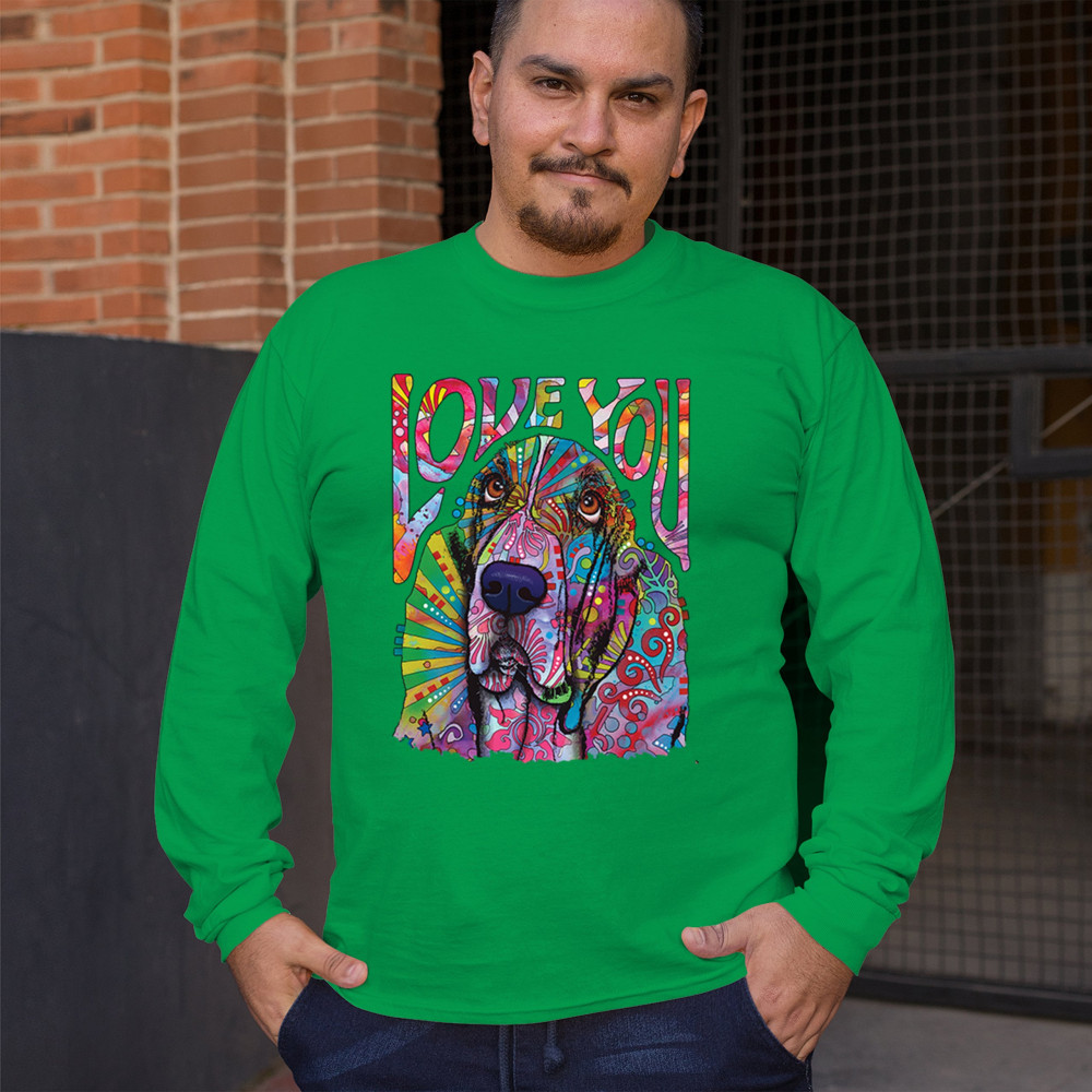 DEAN RUSSO CUTE LOVE YOU BASSET long sleeve t-shirt colorful dog neon pet green