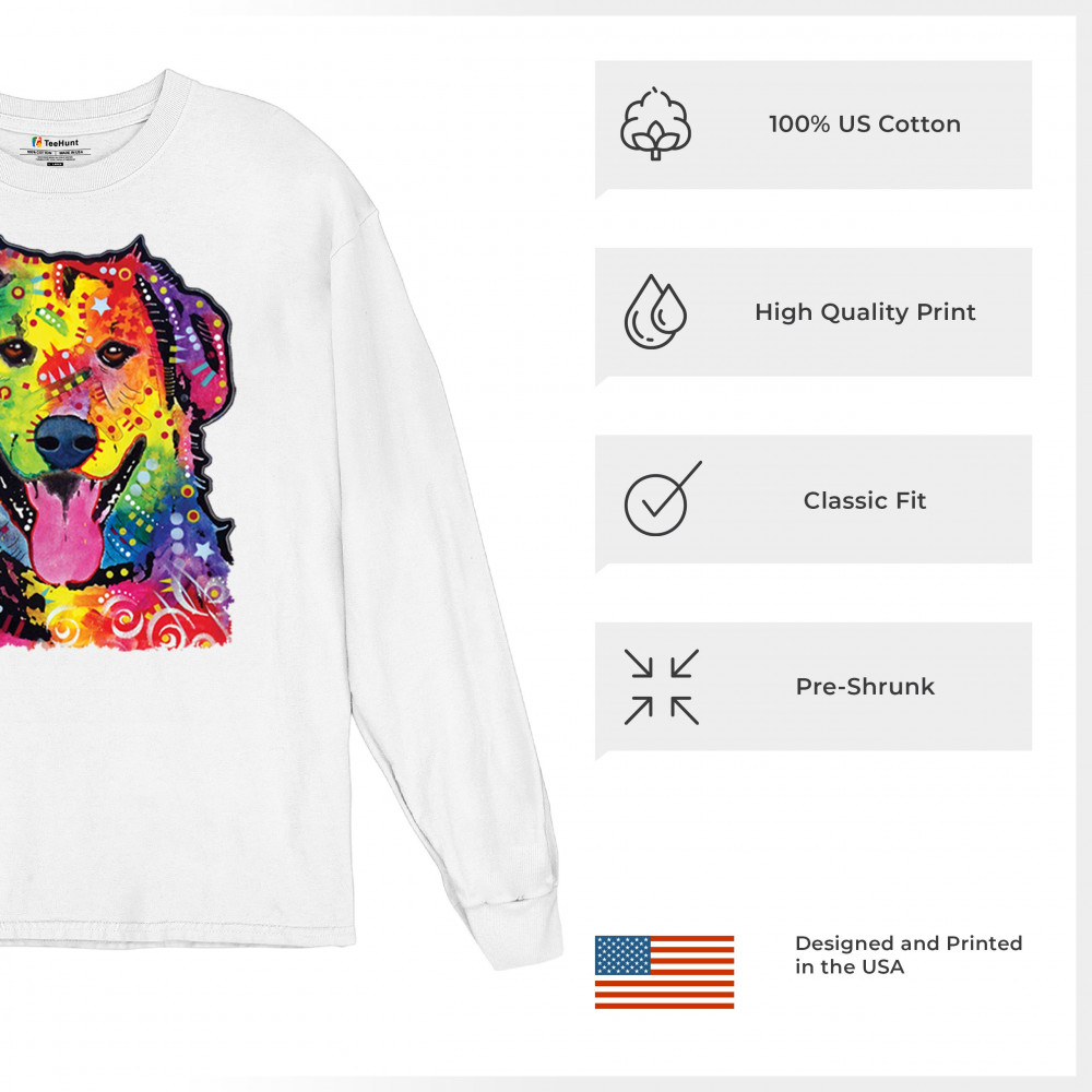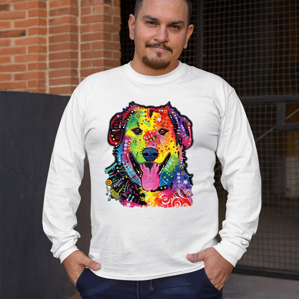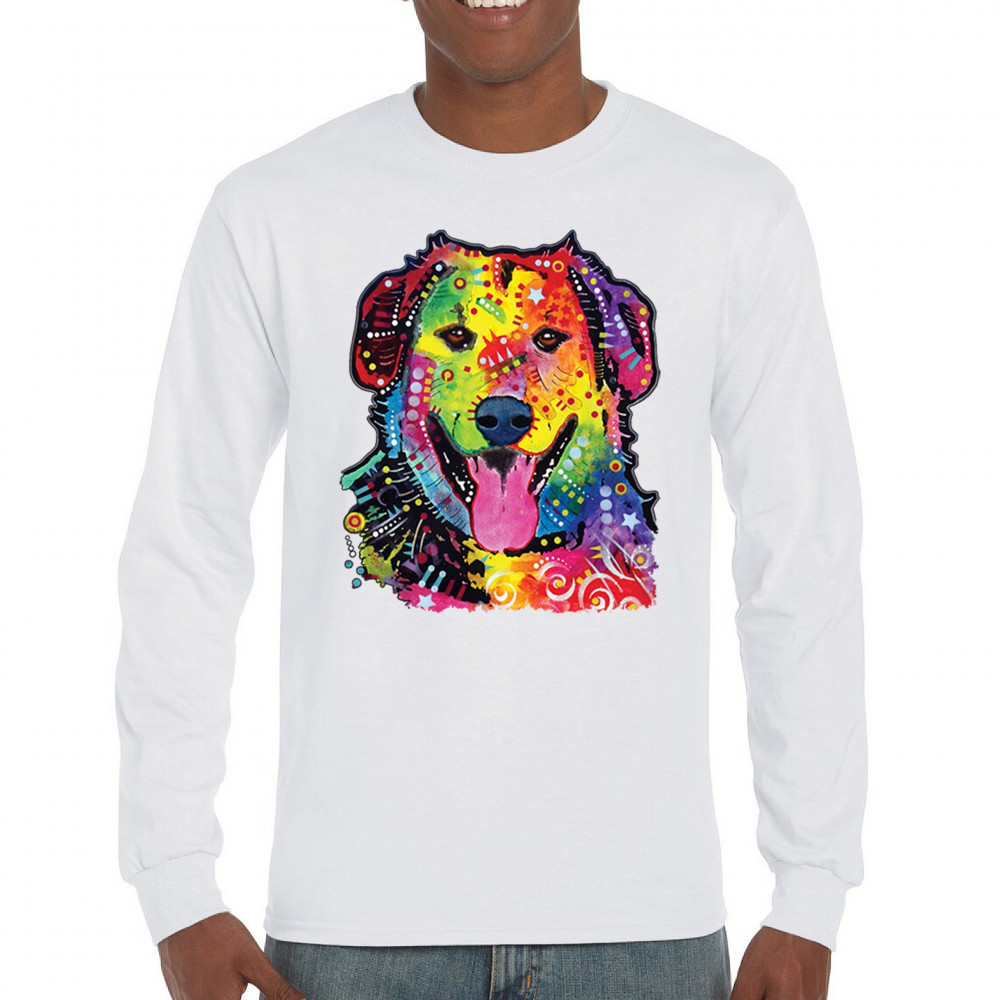 DEAN RUSSO CUTE NEON DOG long sleeve t-shirt rescue adopt a pet colorful pet white