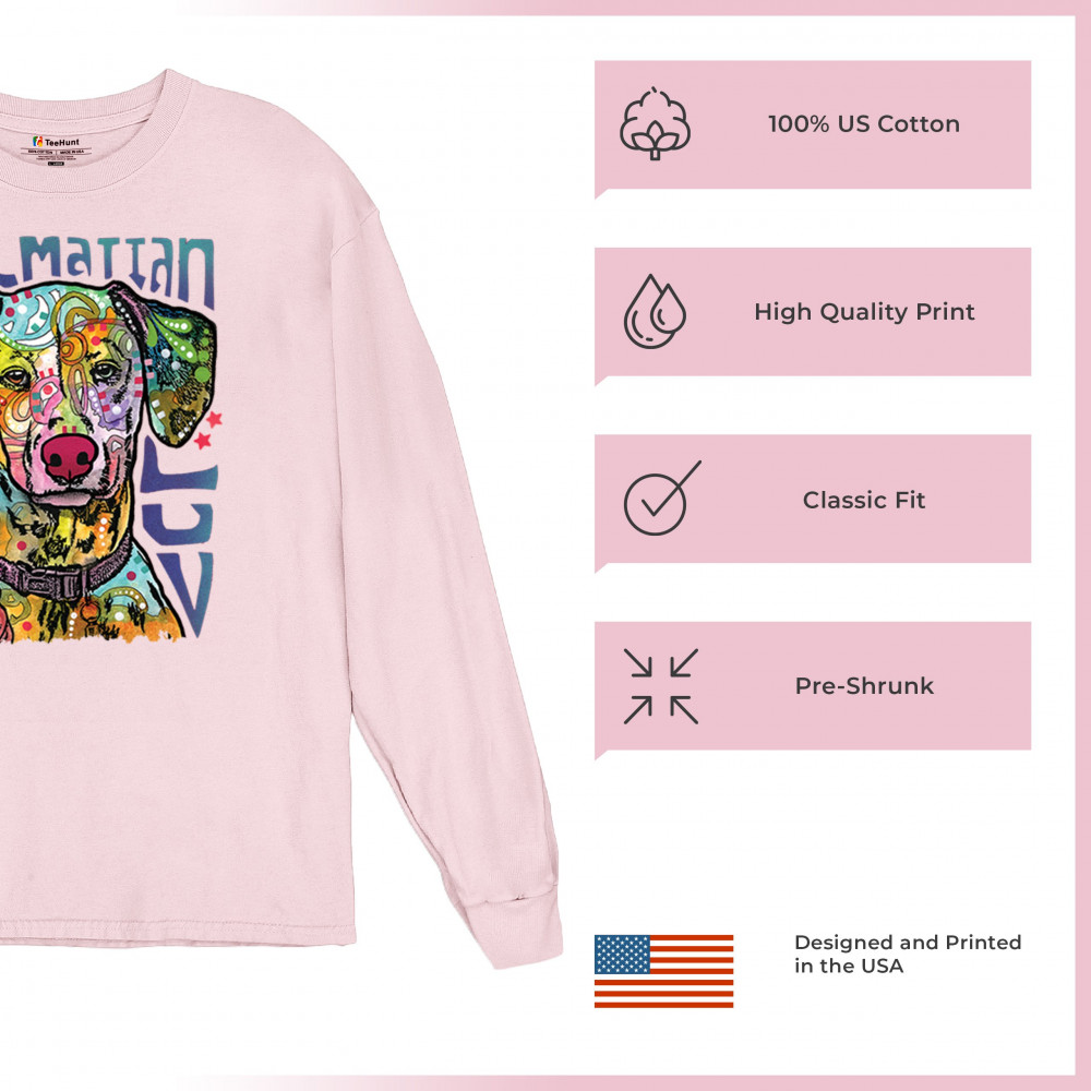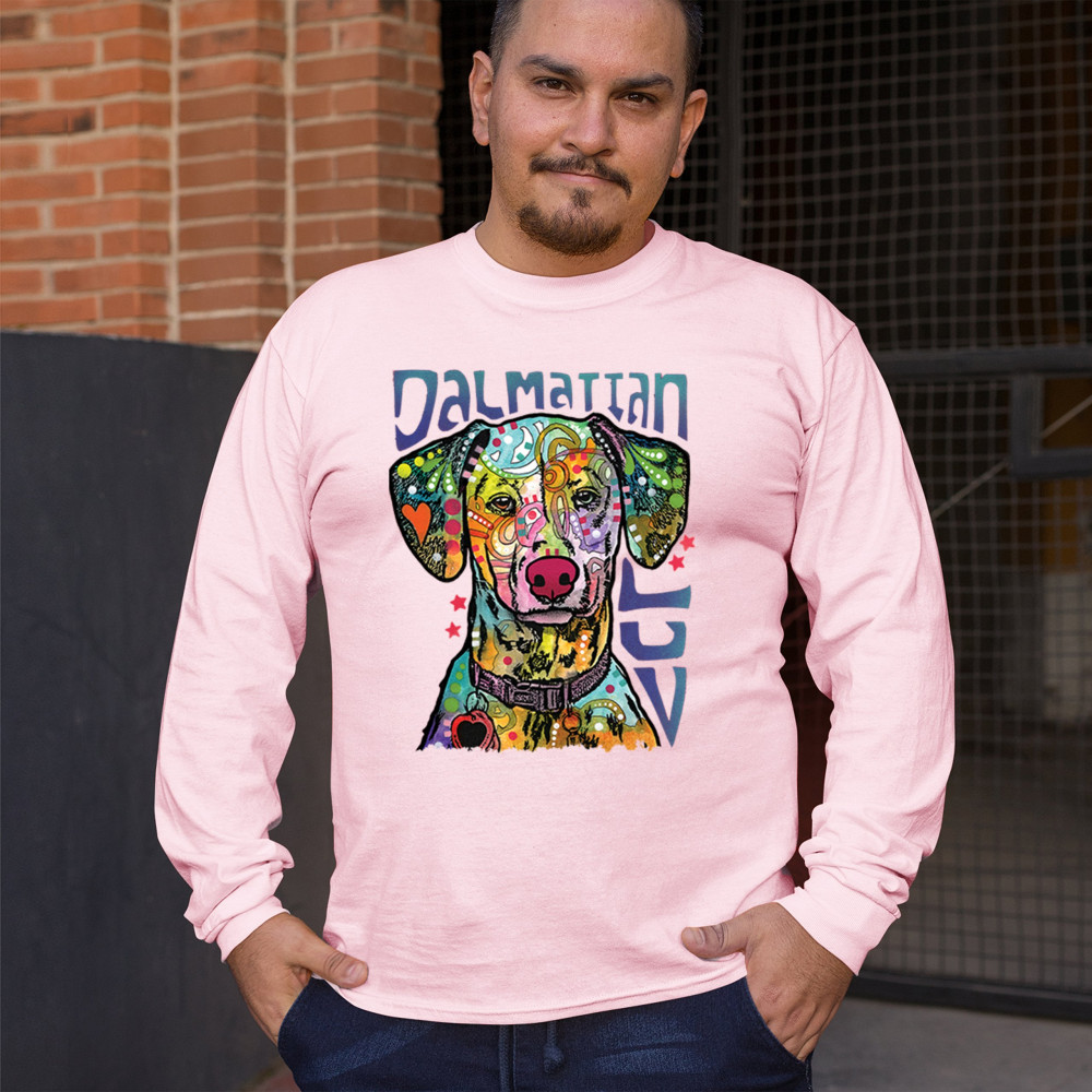 DEAN RUSSO DALMATIAN LUV COLORFUL DOG long sleeve t-shirt neon puppy lover pink