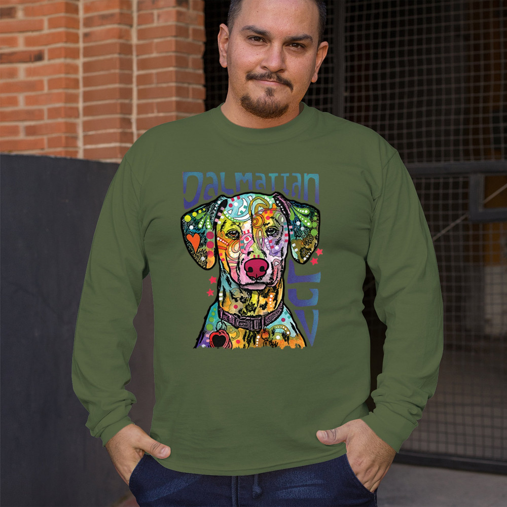 DEAN RUSSO DALMATIAN LUV COLORFUL DOG long sleeve t-shirt neon puppy lover military green