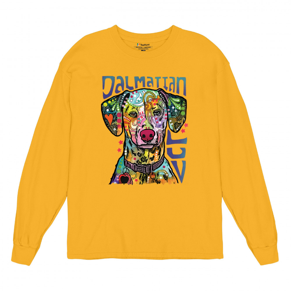 DEAN RUSSO DALMATIAN LUV COLORFUL DOG long sleeve t-shirt neon puppy lover yellow