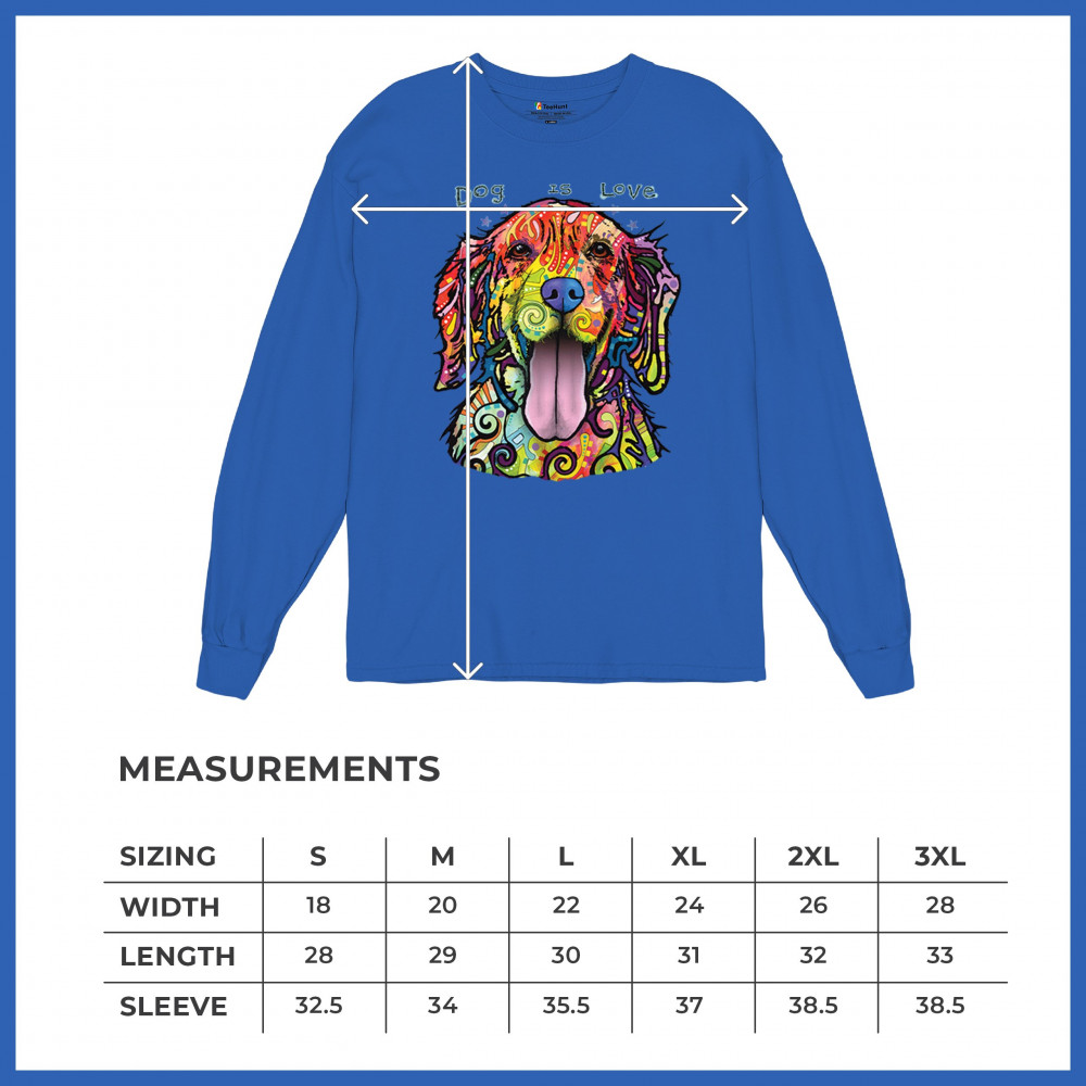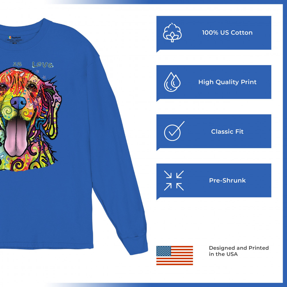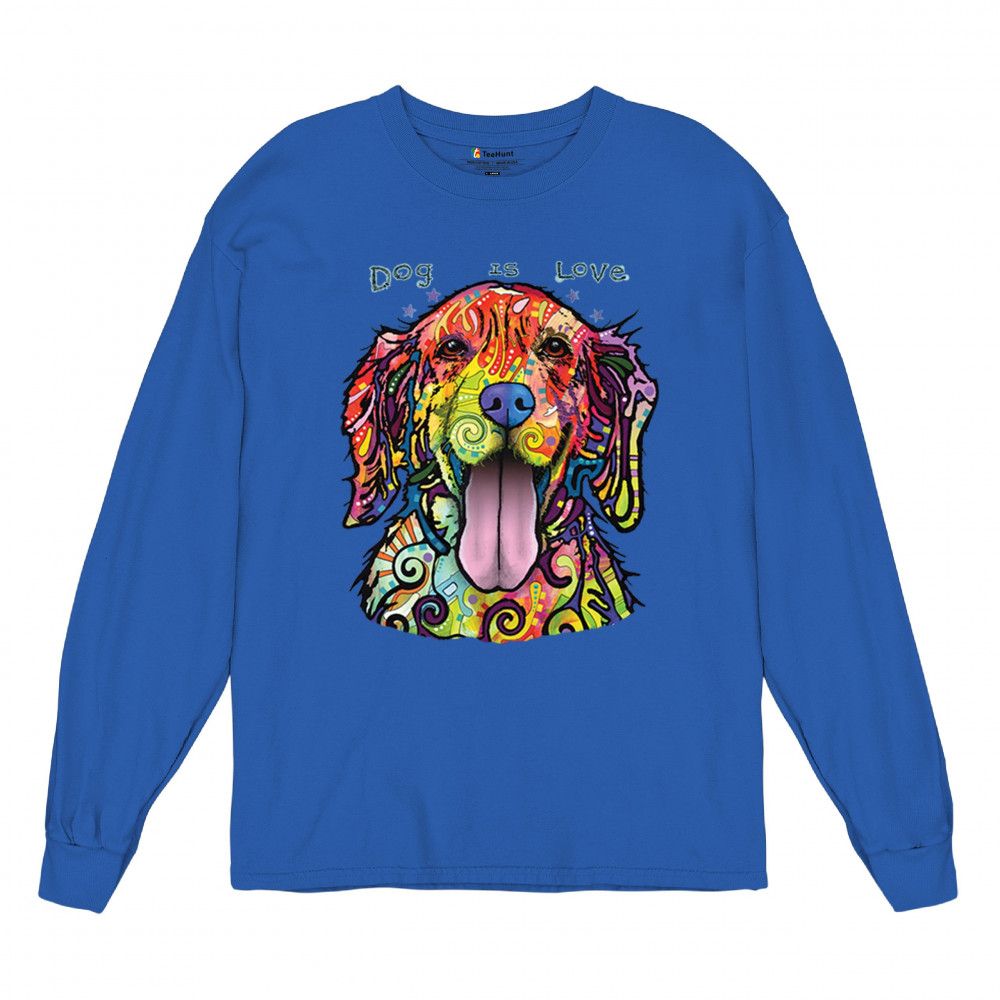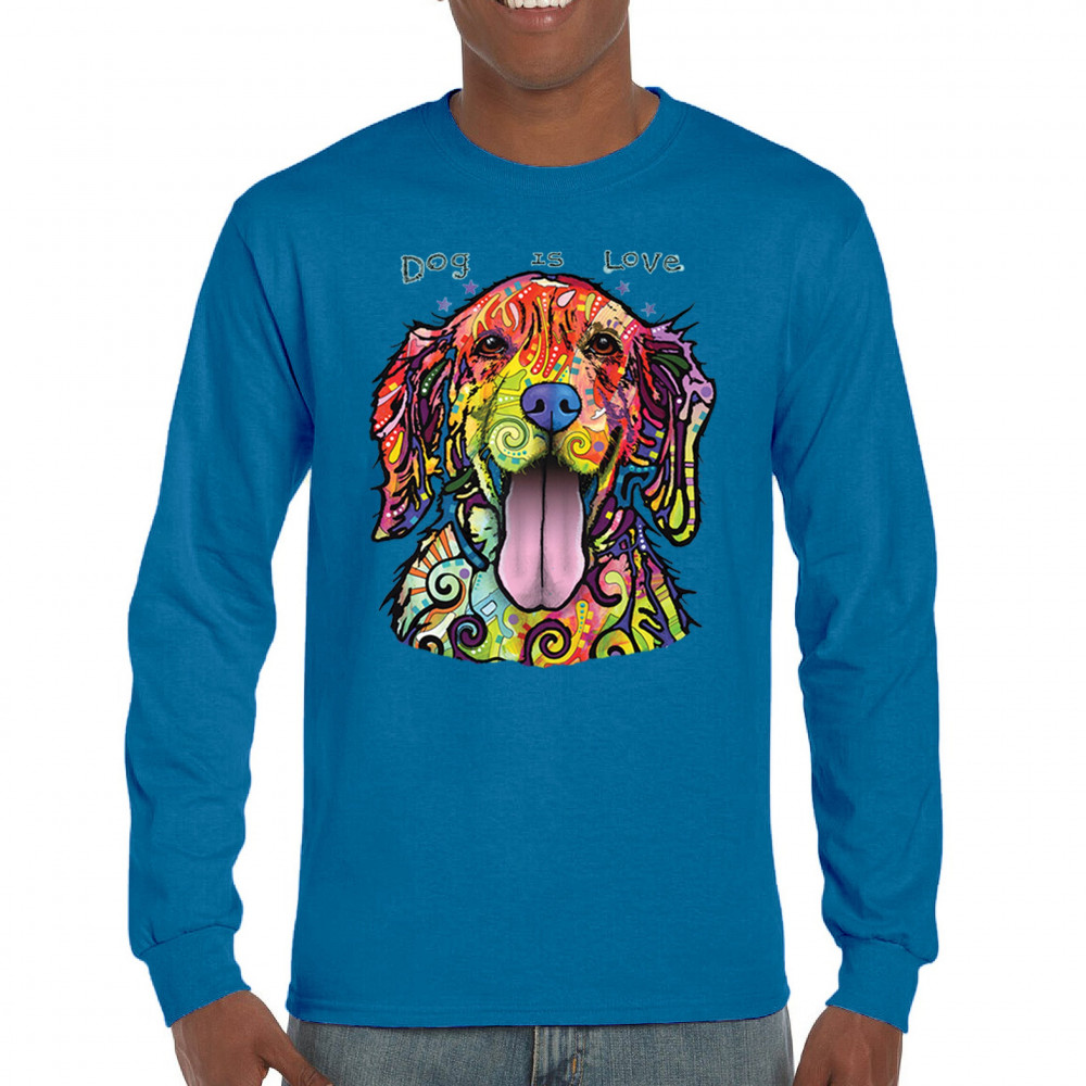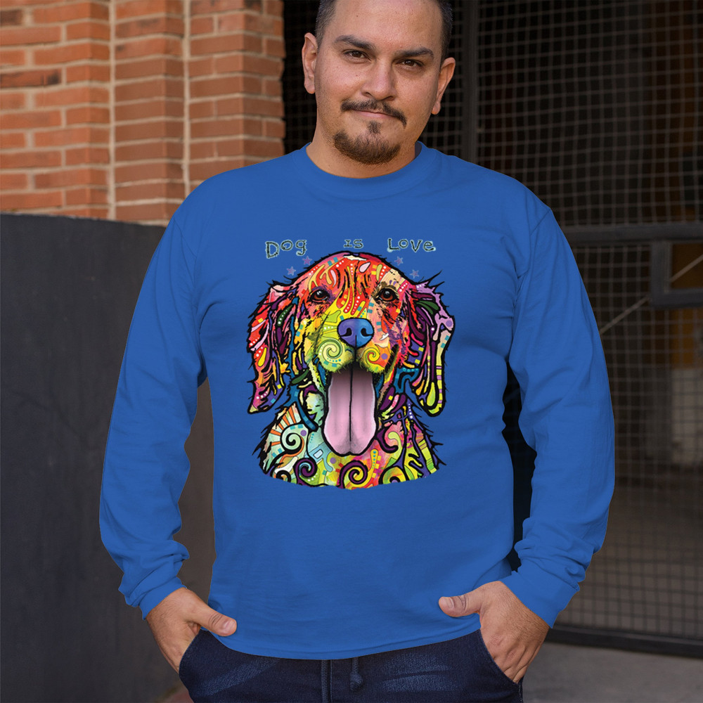 DEAN RUSSO DOG IS LOVE LABRADOR RETRIEVER long sleeve t-shirt happy pet royal blue