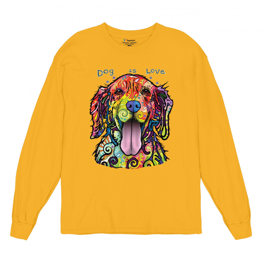 DEAN RUSSO DOG IS LOVE LABRADOR RETRIEVER long sleeve t-shirt happy pet yellow