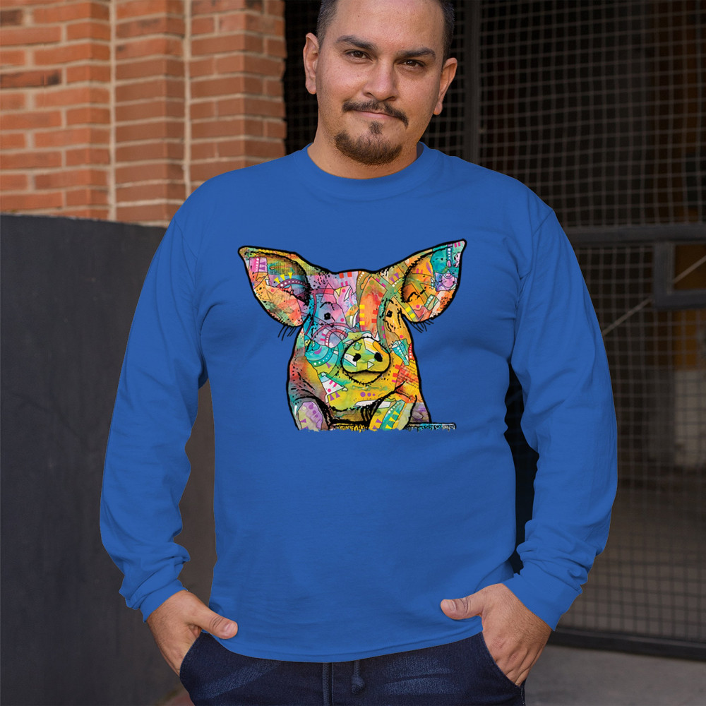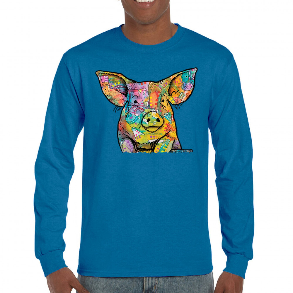 DEAN RUSSO FUNNY CUTE PIG long sleeve t-shirt farm piglet lover barn royal blue