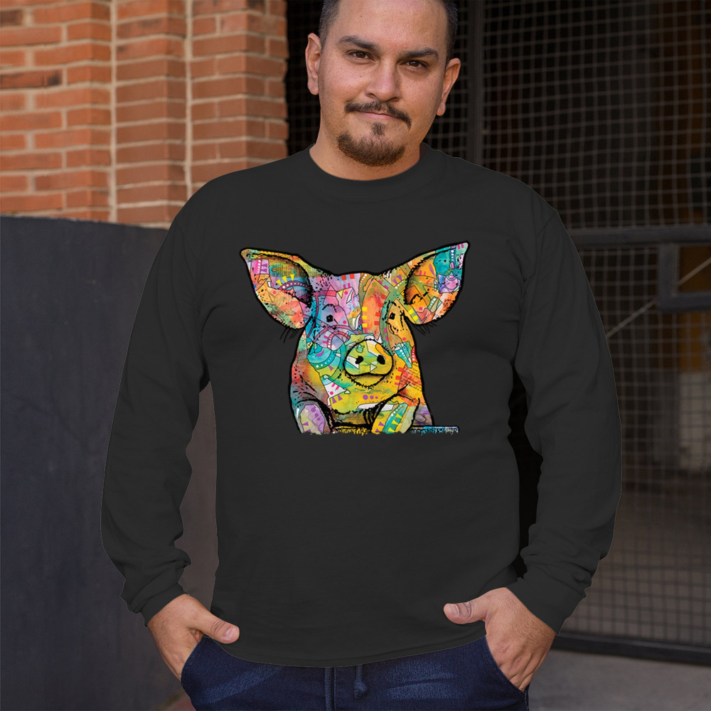 DEAN RUSSO FUNNY CUTE PIG long sleeve t-shirt farm piglet lover barn black