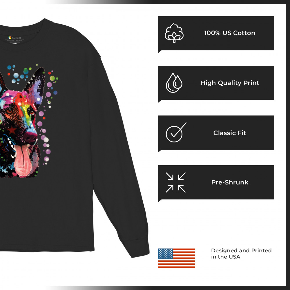 DEAN RUSSO GERMAN SHEPHERD long sleeve t-shirt colorful dog best friend black
