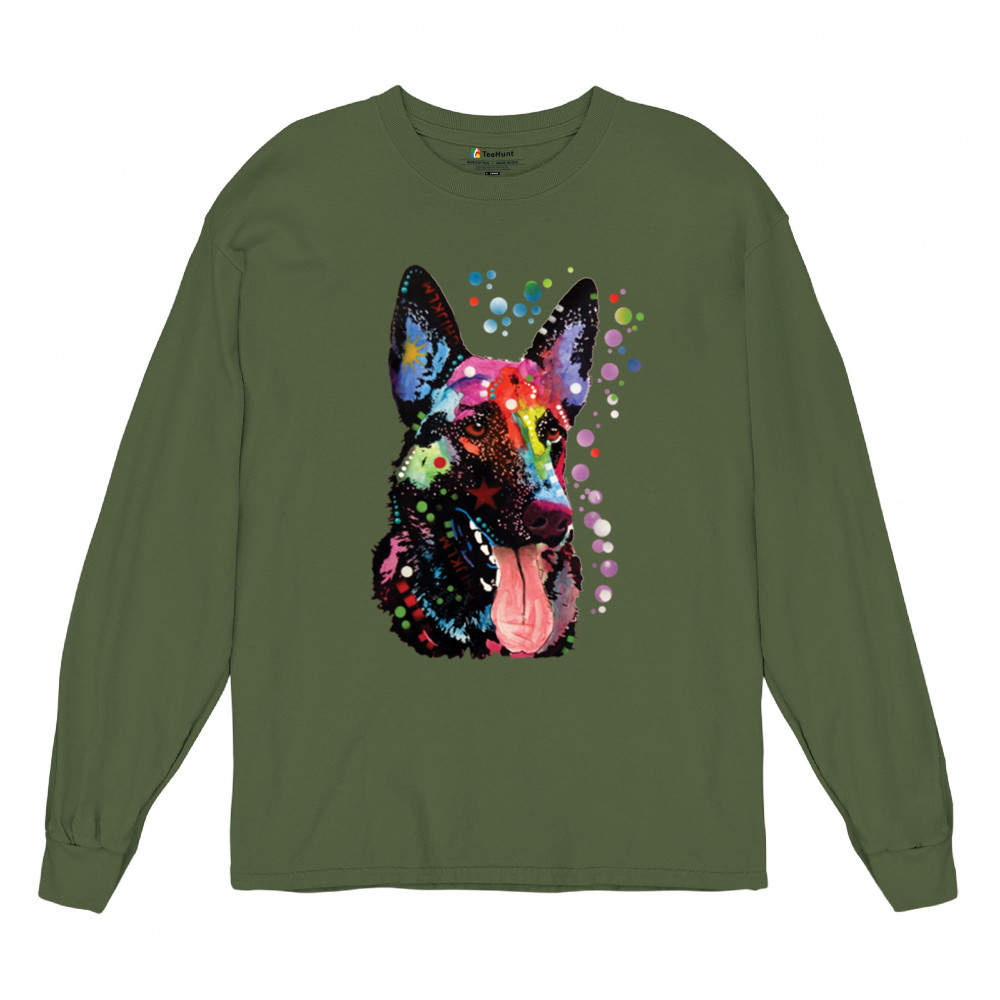 DEAN RUSSO GERMAN SHEPHERD long sleeve t-shirt colorful dog best friend military green