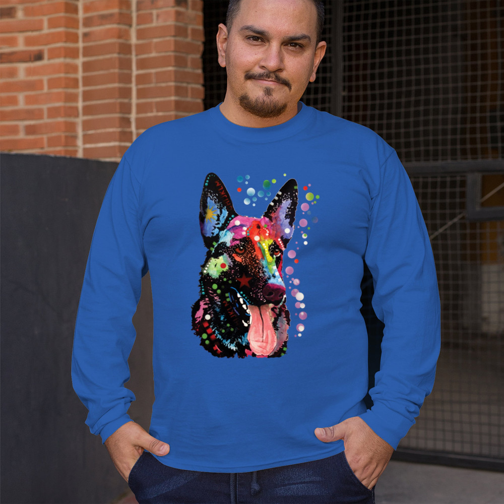 DEAN RUSSO GERMAN SHEPHERD long sleeve t-shirt colorful dog best friend royal blue