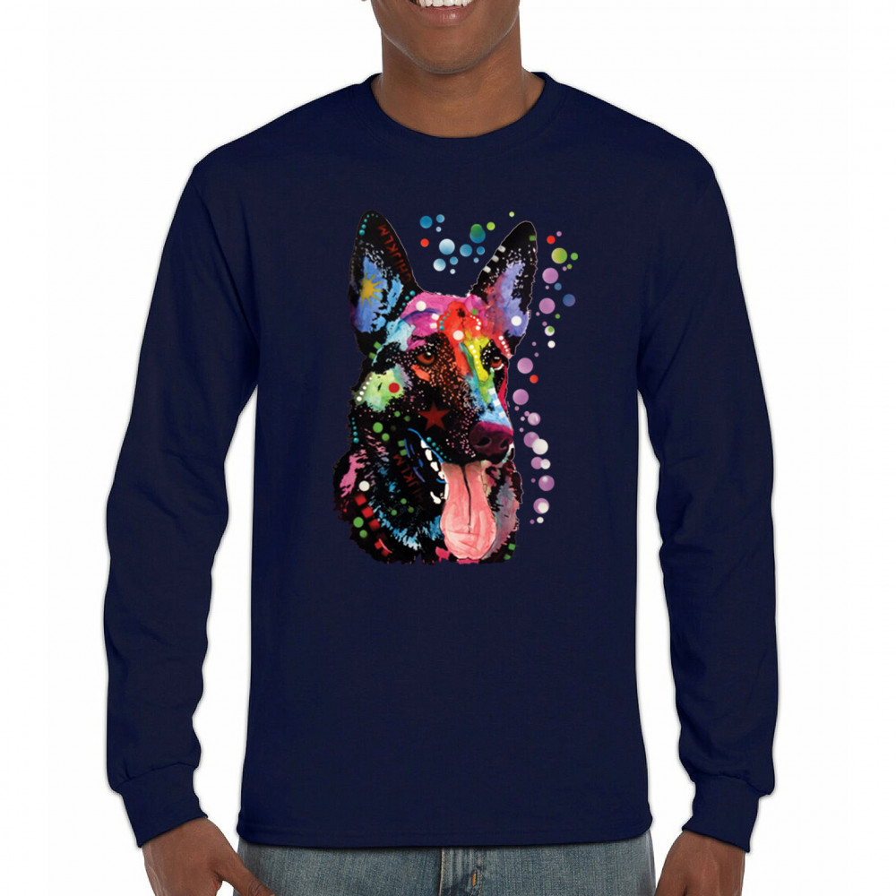 DEAN RUSSO GERMAN SHEPHERD long sleeve t-shirt colorful dog best friend navy blue