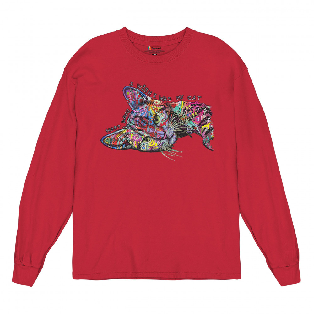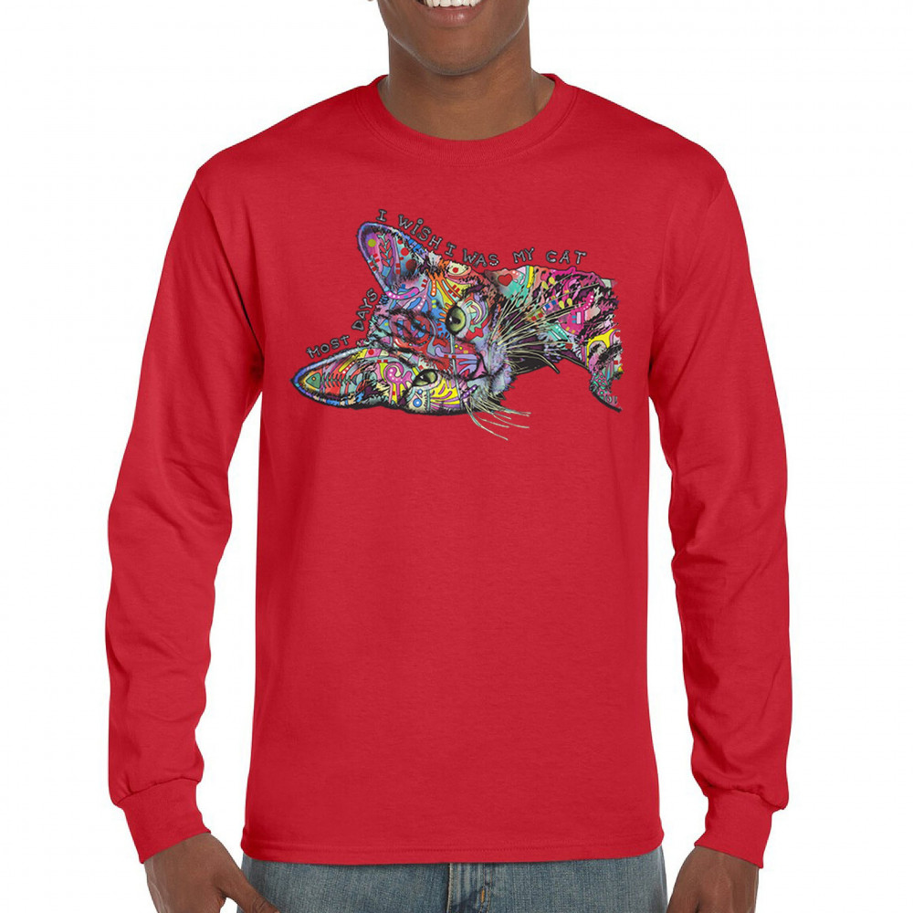 DEAN RUSSO MOST DAYS I WISH I WAS MY CAT long sleeve t-shirt cute kitten meow red