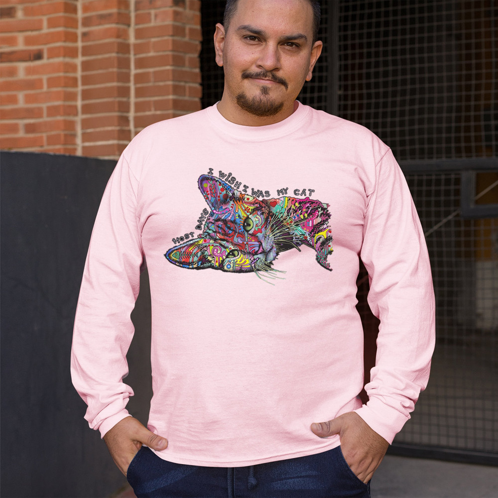 DEAN RUSSO MOST DAYS I WISH I WAS MY CAT long sleeve t-shirt cute kitten meow pink