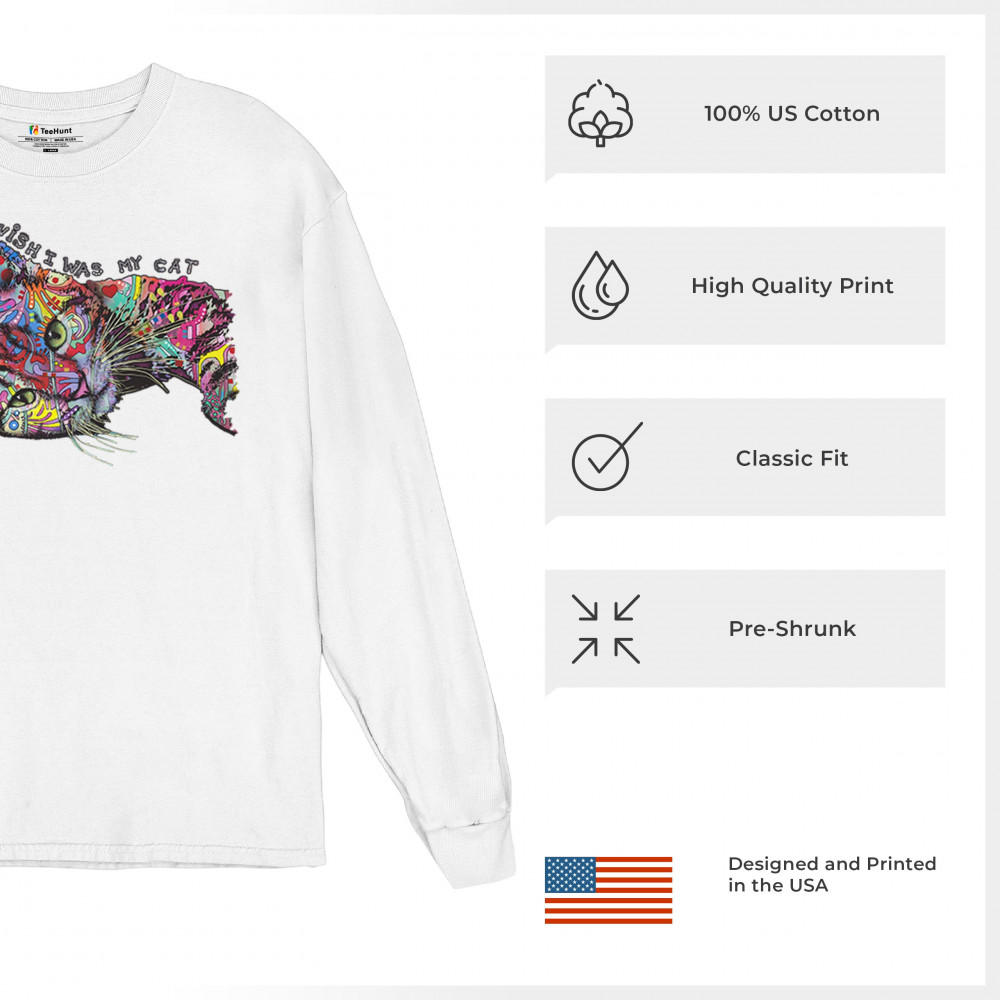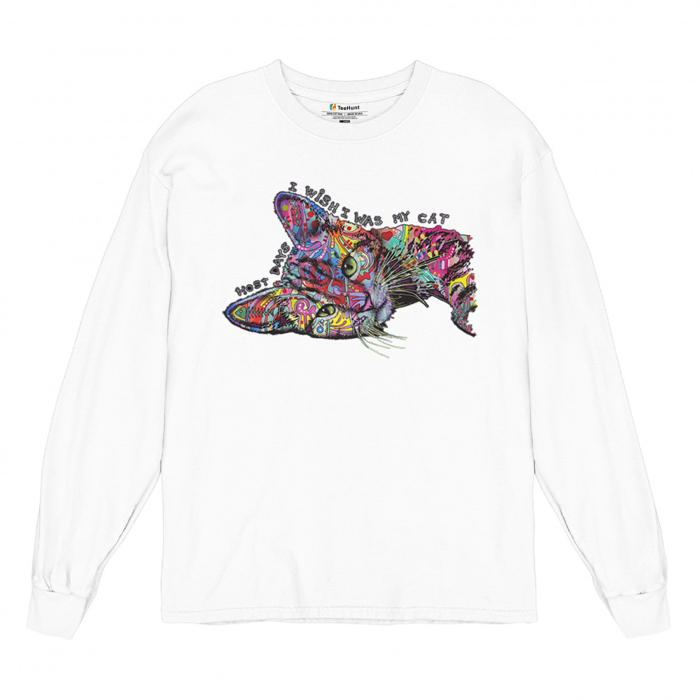 DEAN RUSSO MOST DAYS I WISH I WAS MY CAT long sleeve t-shirt cute kitten meow white