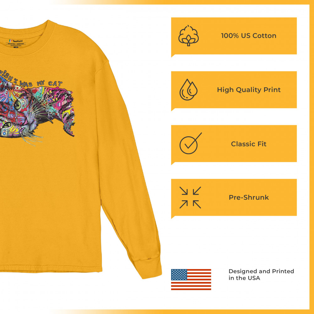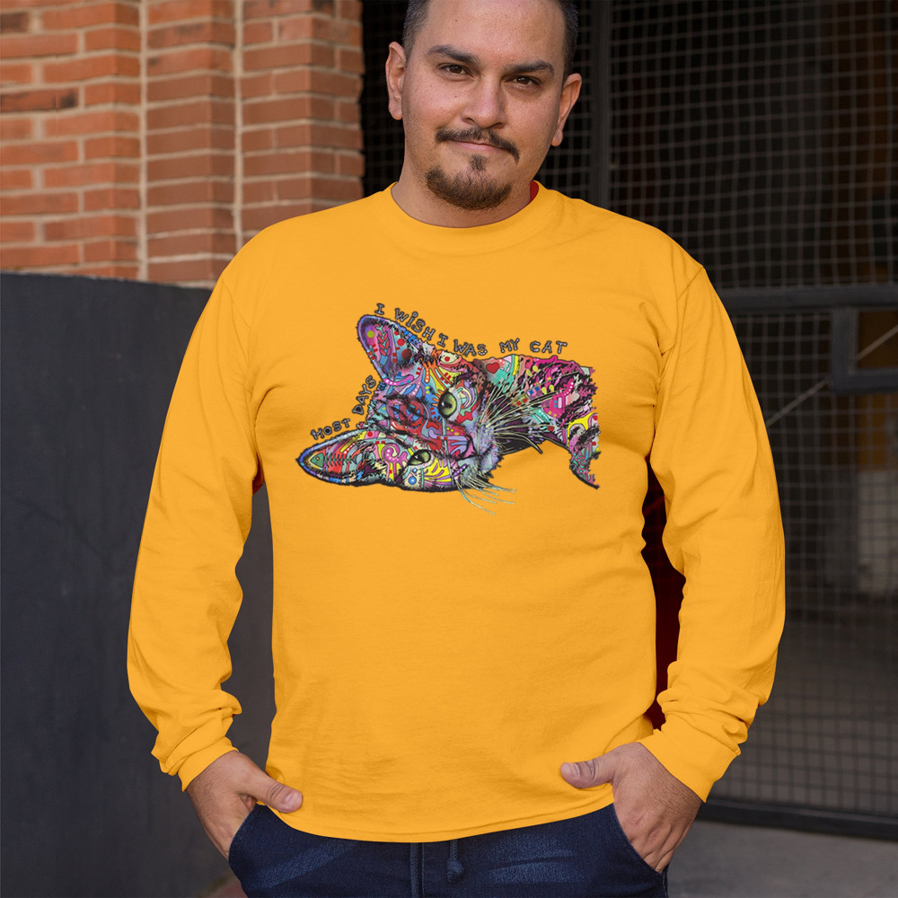 DEAN RUSSO MOST DAYS I WISH I WAS MY CAT long sleeve t-shirt cute kitten meow yellow