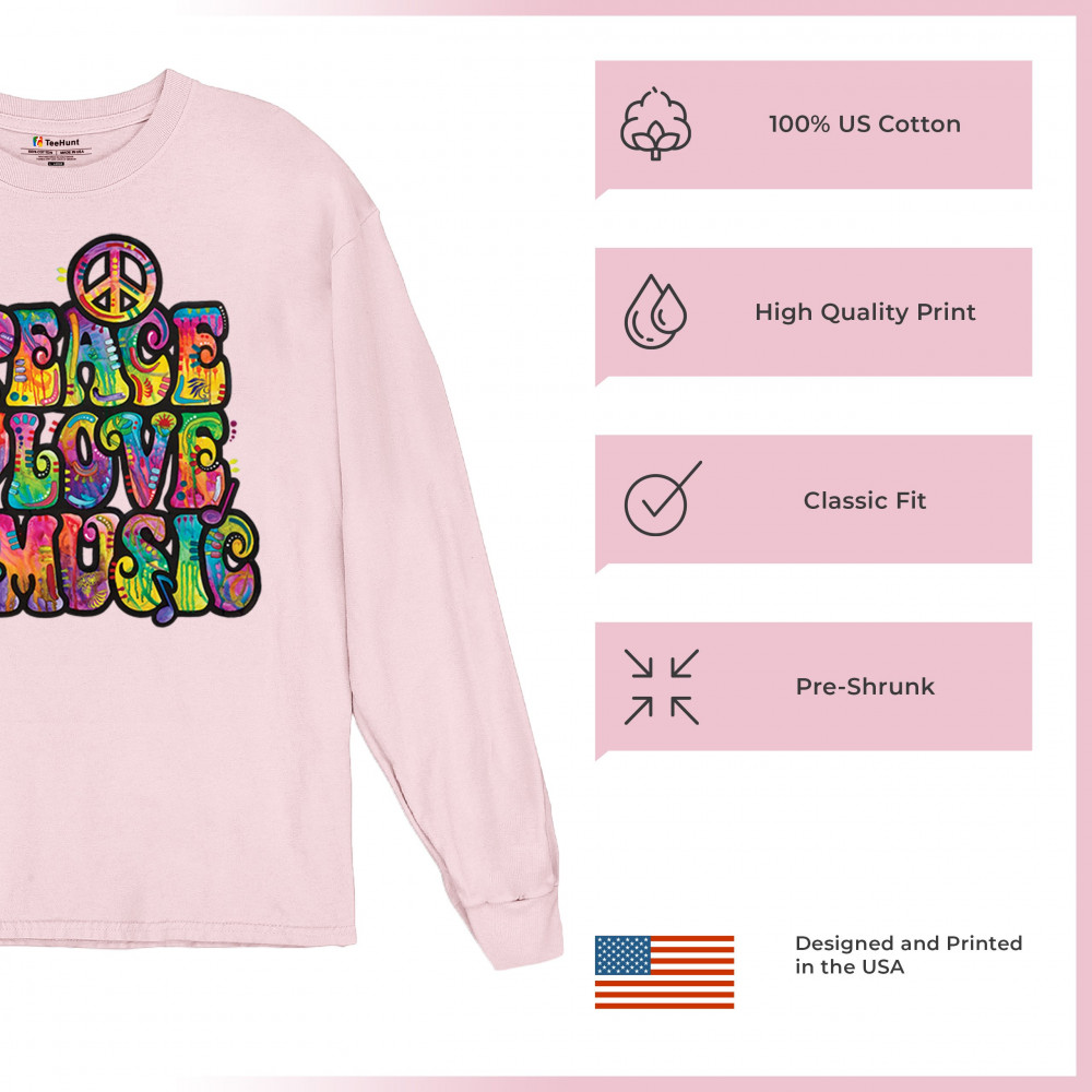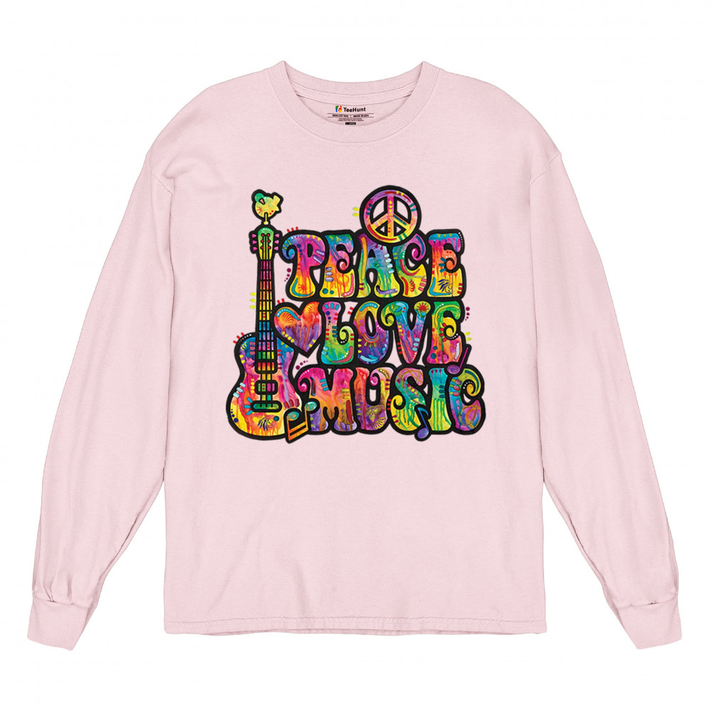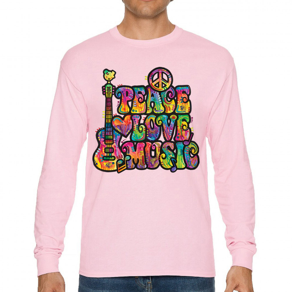 DEAN RUSSO PEACE LOVE MUSIC long sleeve t-shirt guitar happy good vibe pink