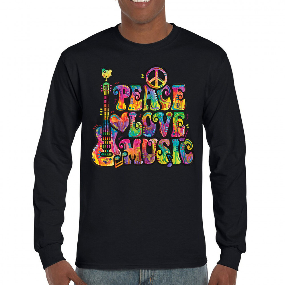 DEAN RUSSO PEACE LOVE MUSIC long sleeve t-shirt guitar happy good vibe black
