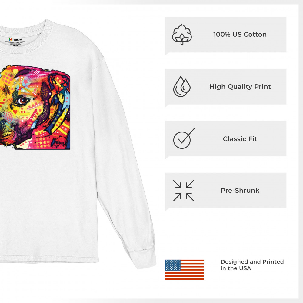 DEAN RUSSO PIT BULL long sleeve t-shirt dog wags its tail with its heart white