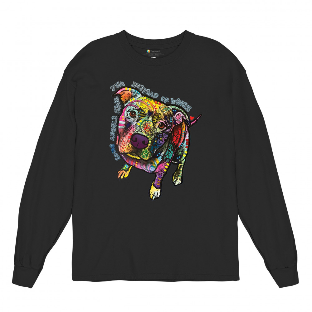 DEAN RUSSO PIT BULL long sleeve t-shirt some angels have fur instead of wings black