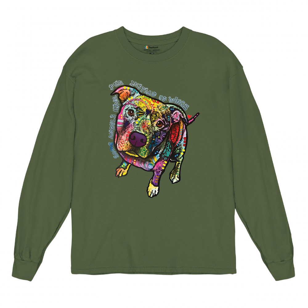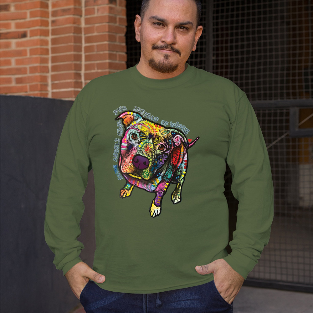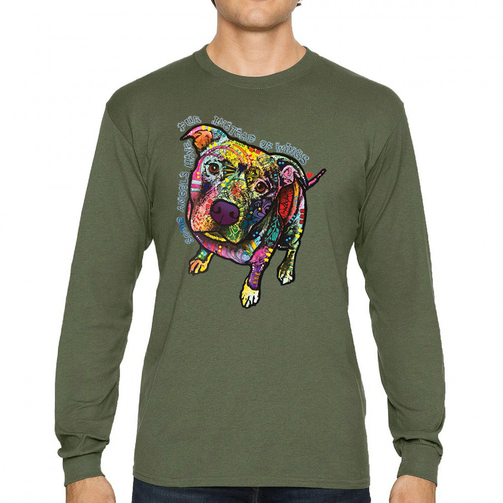 DEAN RUSSO PIT BULL long sleeve t-shirt some angels have fur instead of wings military green
