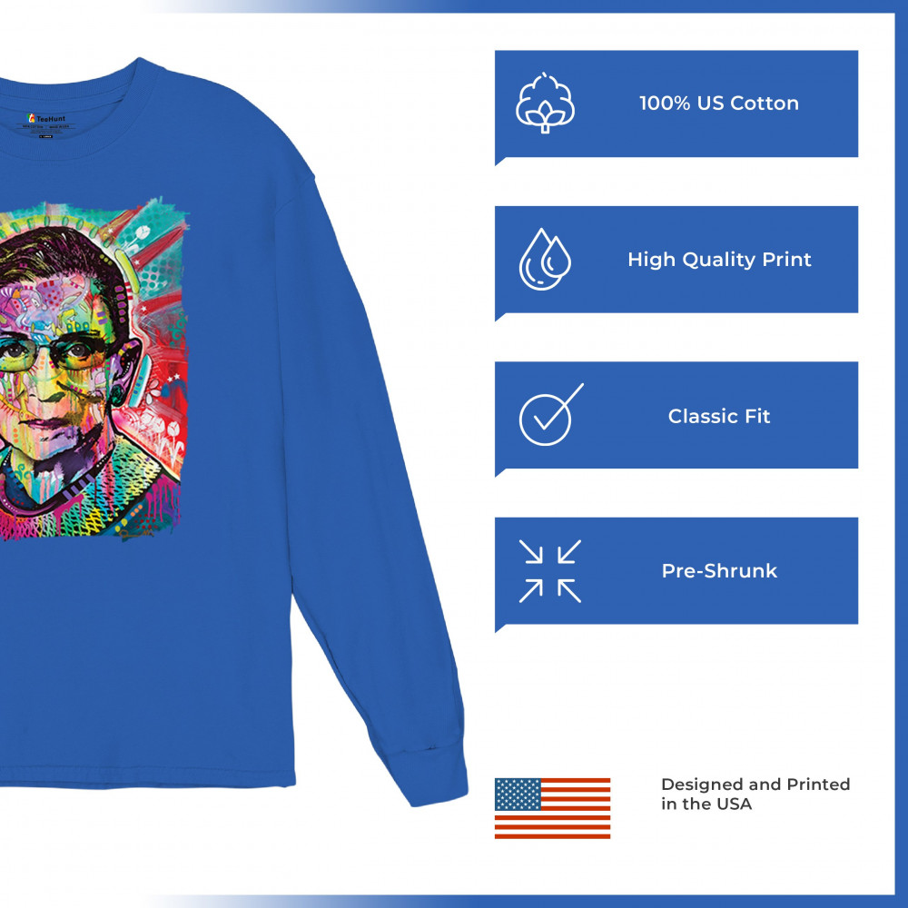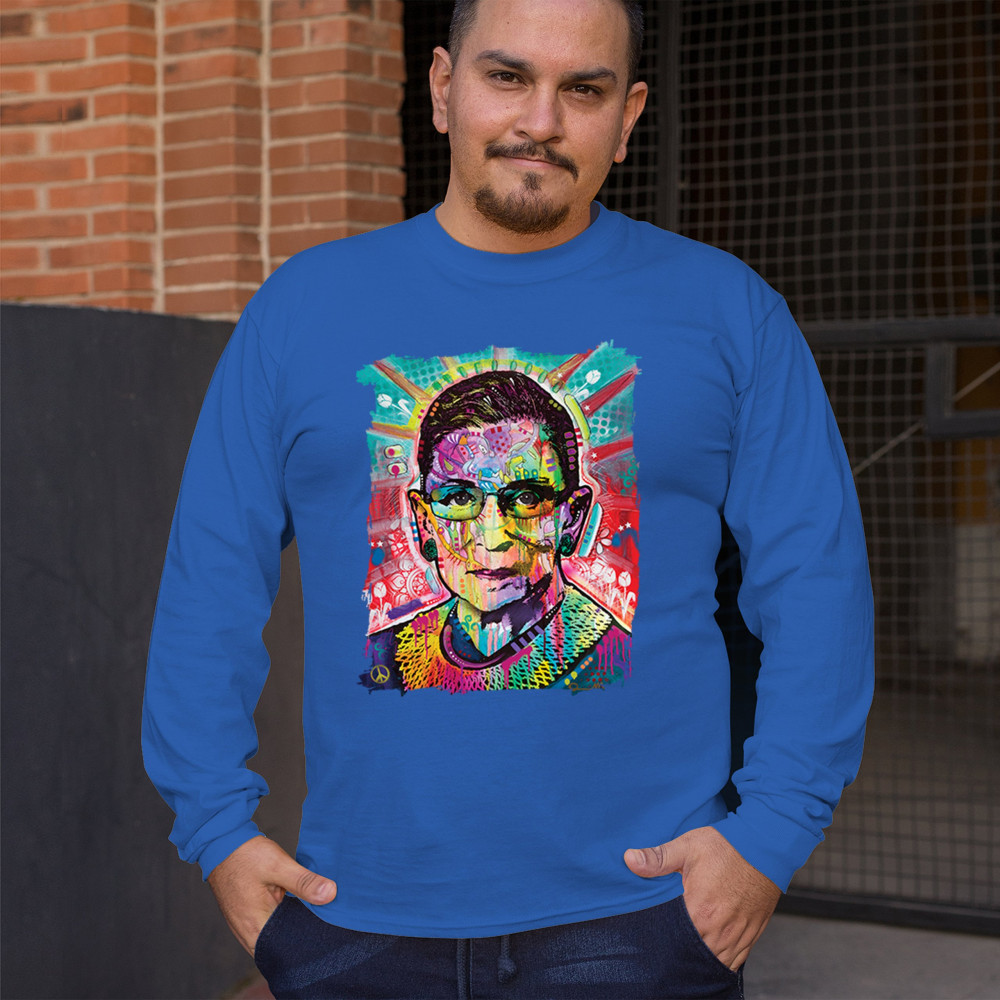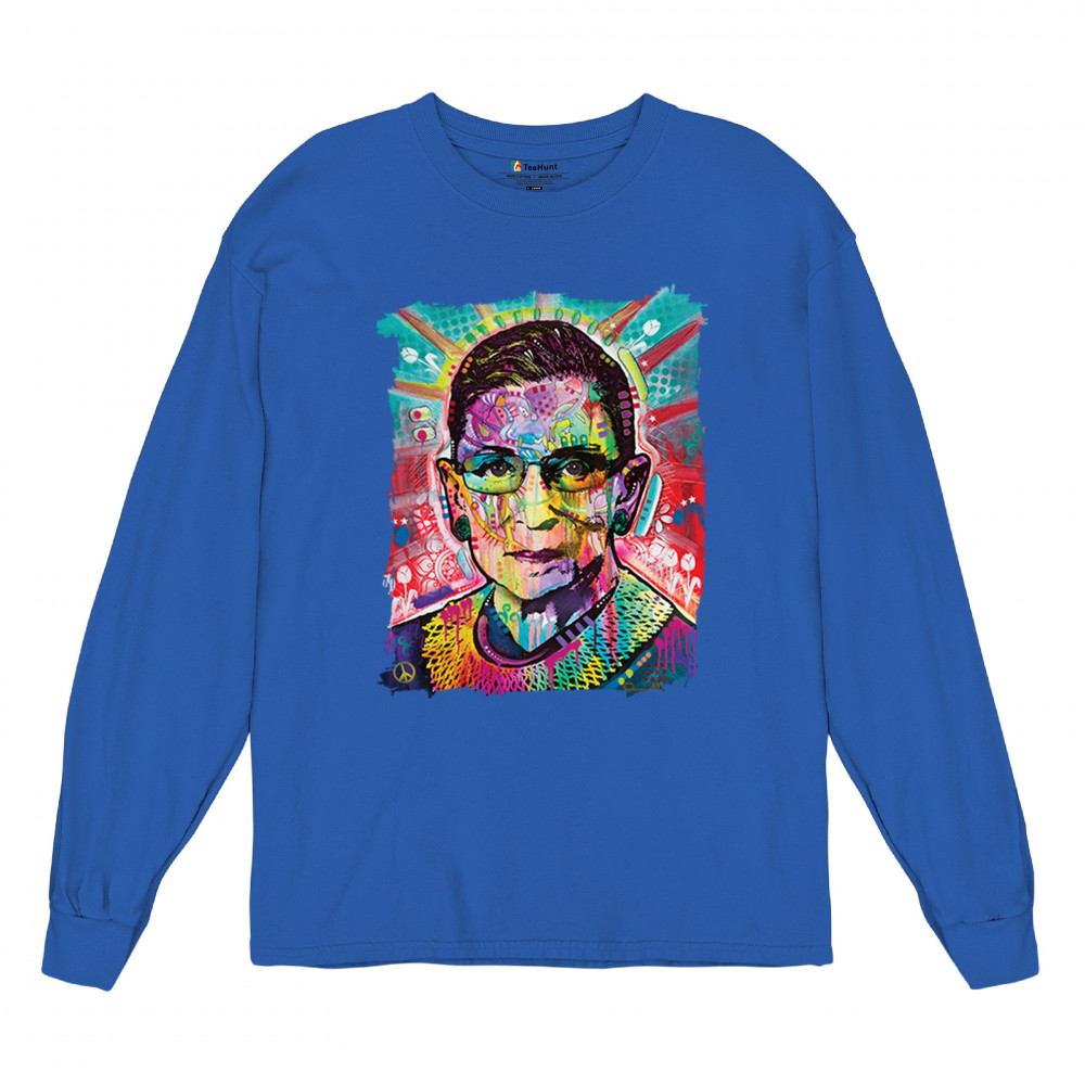 DEAN RUSSO RUTH BADER GINSBURG long sleeve t-shirt pop culture icon rbg royal blue