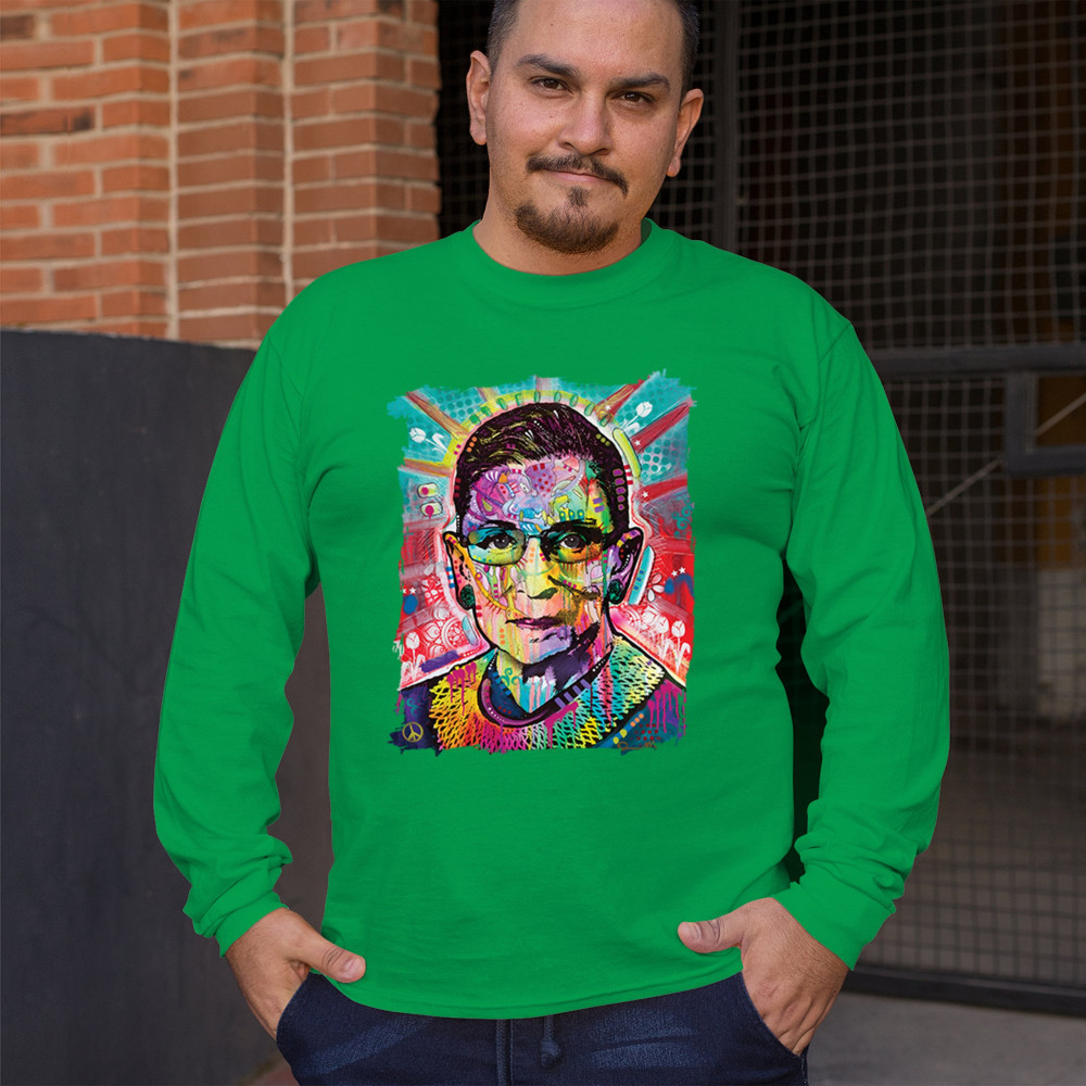 DEAN RUSSO RUTH BADER GINSBURG long sleeve t-shirt pop culture icon rbg green