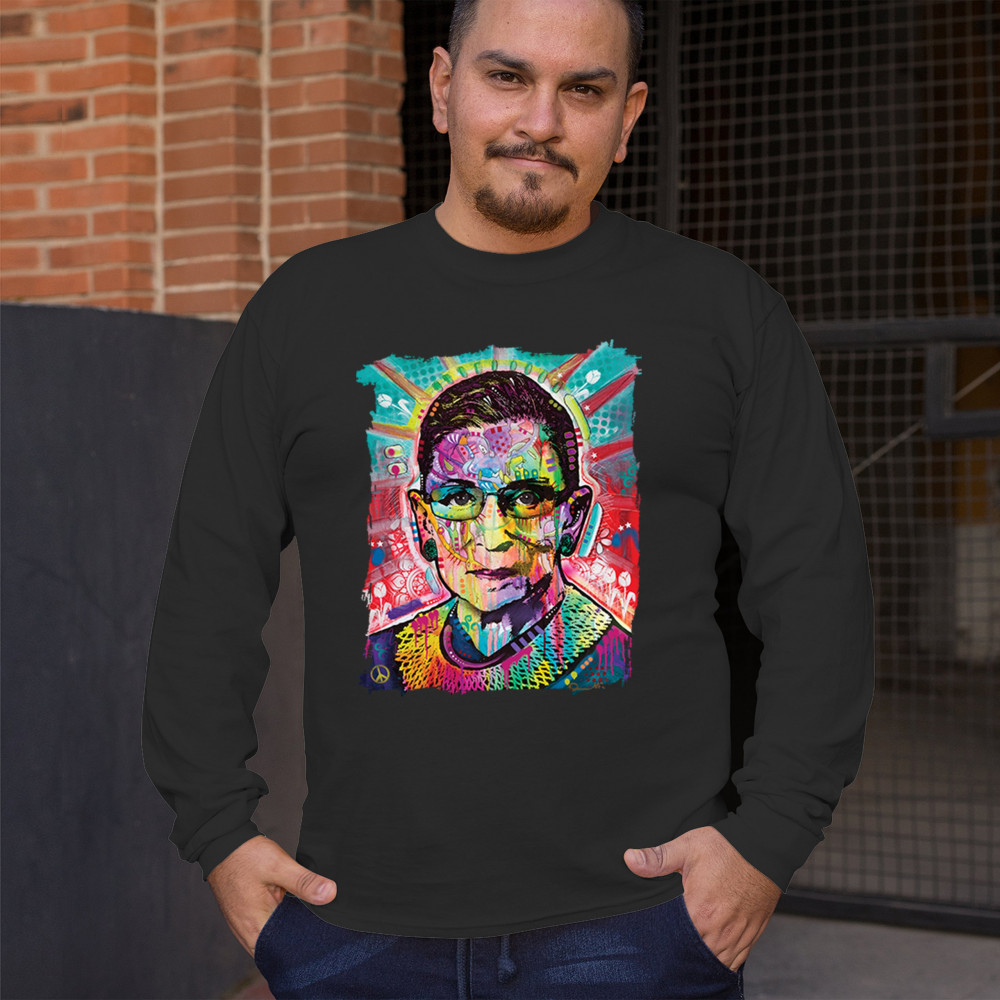 DEAN RUSSO RUTH BADER GINSBURG long sleeve t-shirt pop culture icon rbg black