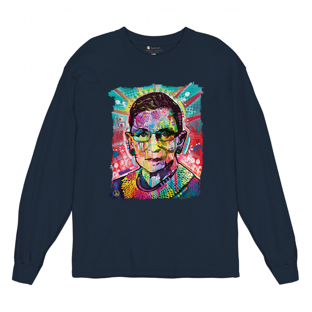 DEAN RUSSO RUTH BADER GINSBURG long sleeve t-shirt pop culture icon rbg navy blue