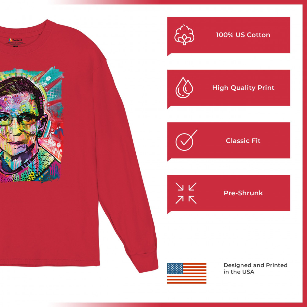DEAN RUSSO RUTH BADER GINSBURG long sleeve t-shirt pop culture icon rbg red