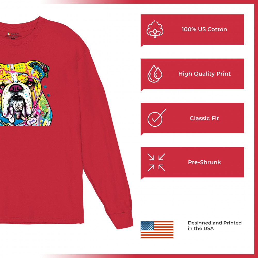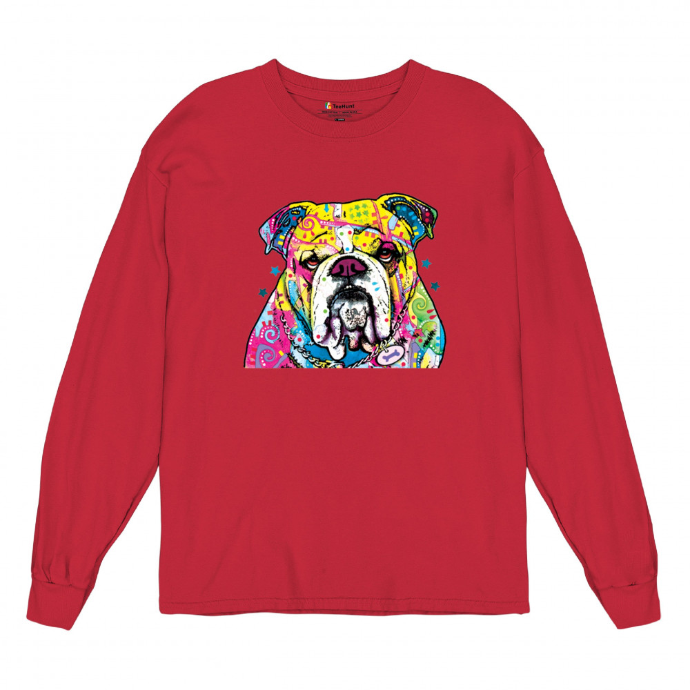 DEAN RUSSO SERIOUS BULLDOG long sleeve t-shirt colorful dog best friend red