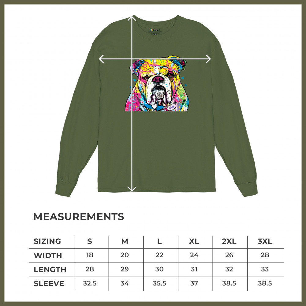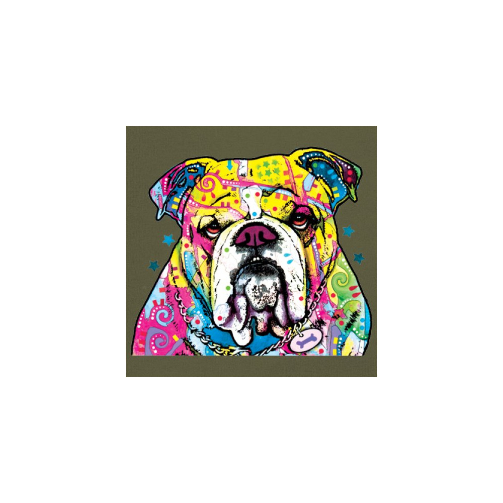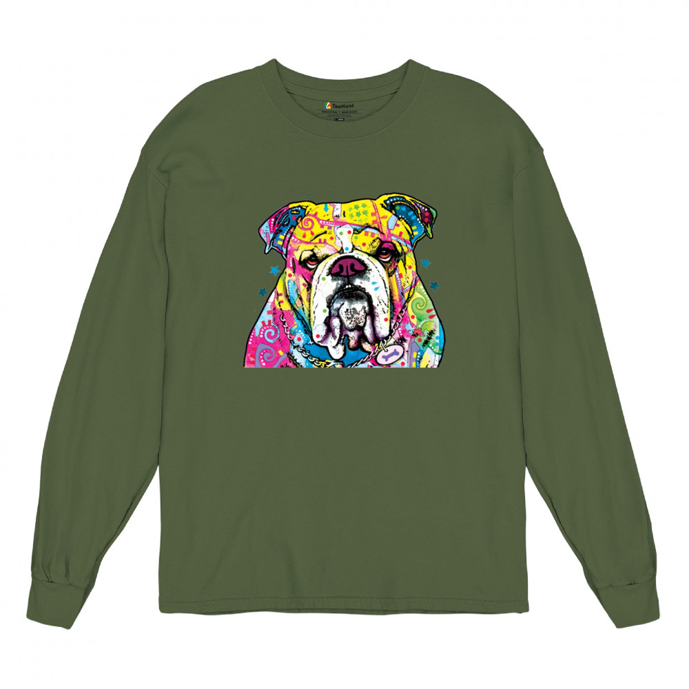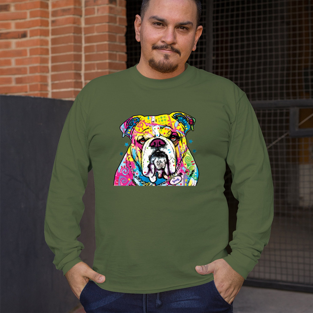 DEAN RUSSO SERIOUS BULLDOG long sleeve t-shirt colorful dog best friend military green