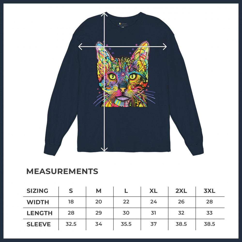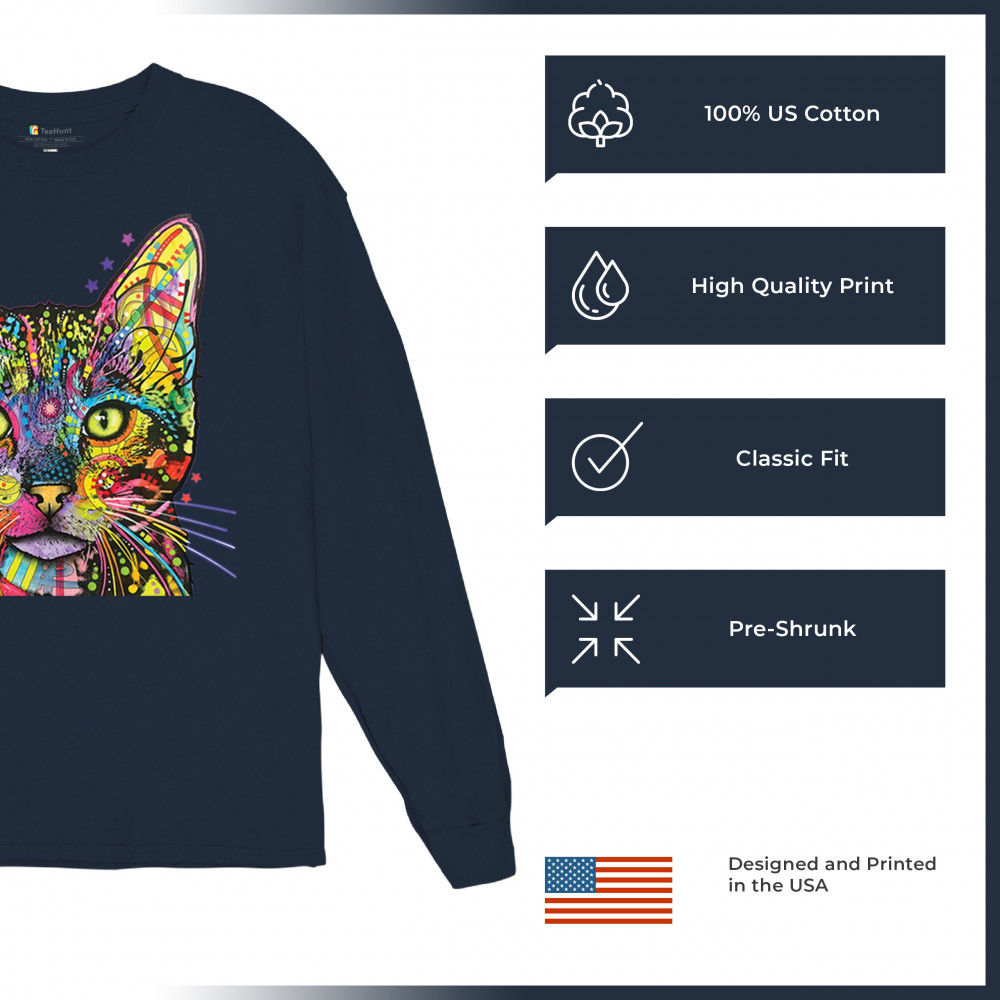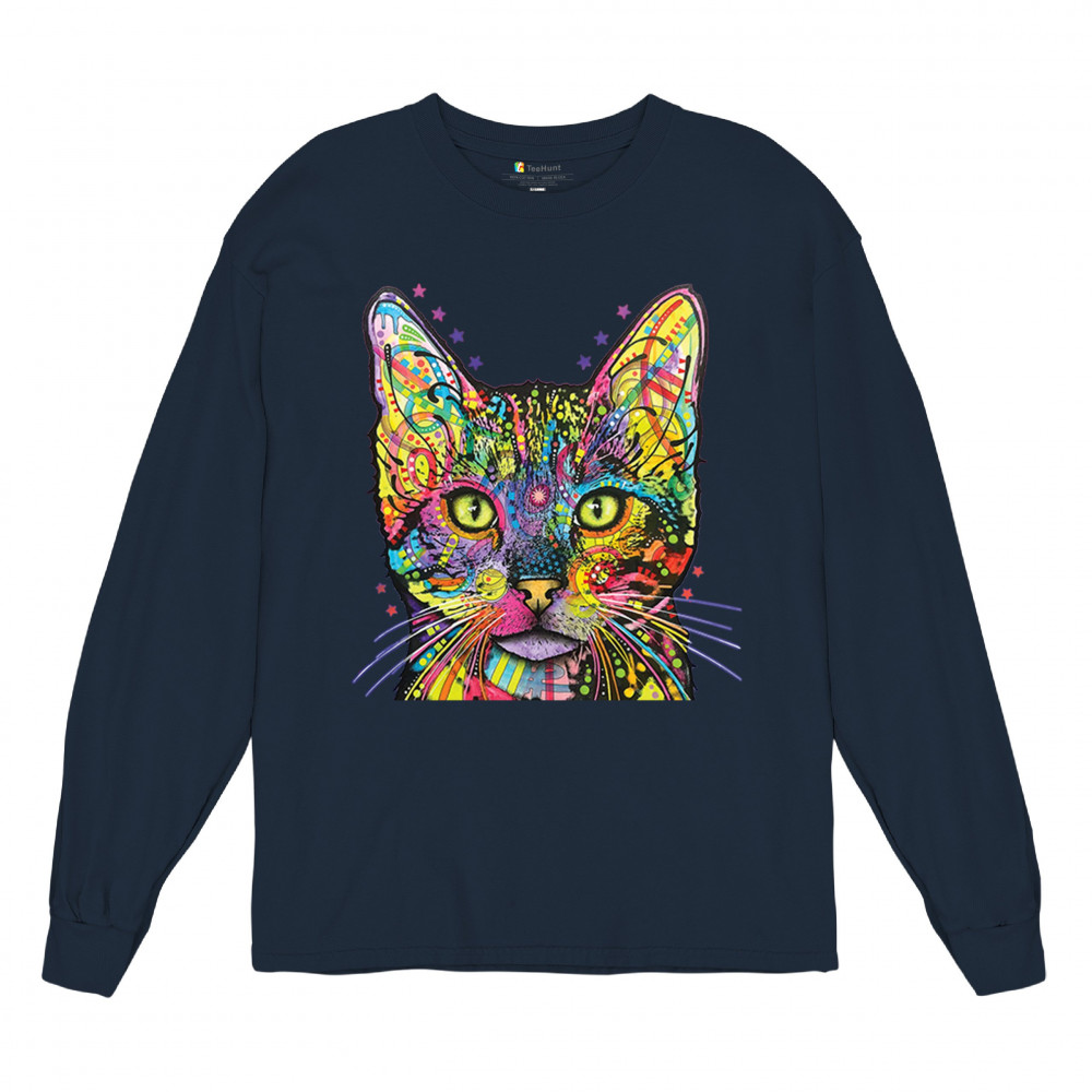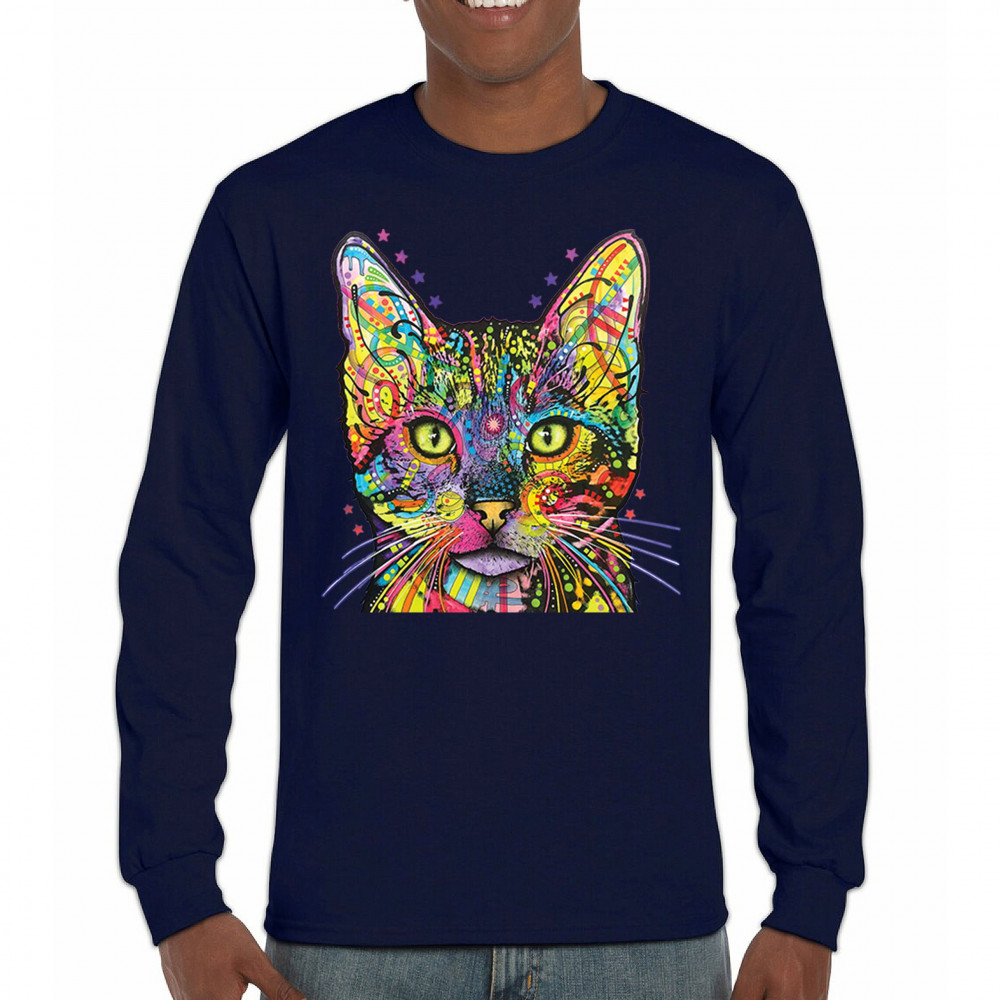 DEAN RUSSO SHIVA CAT STARE long sleeve t-shirt neon mosaic colorful kitten eyes navy blue