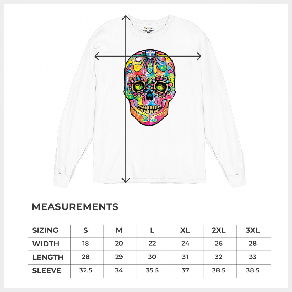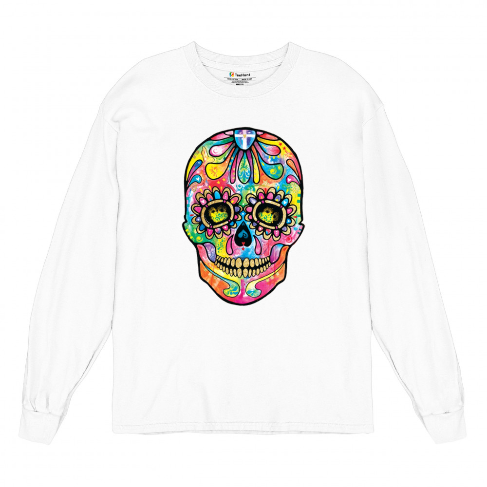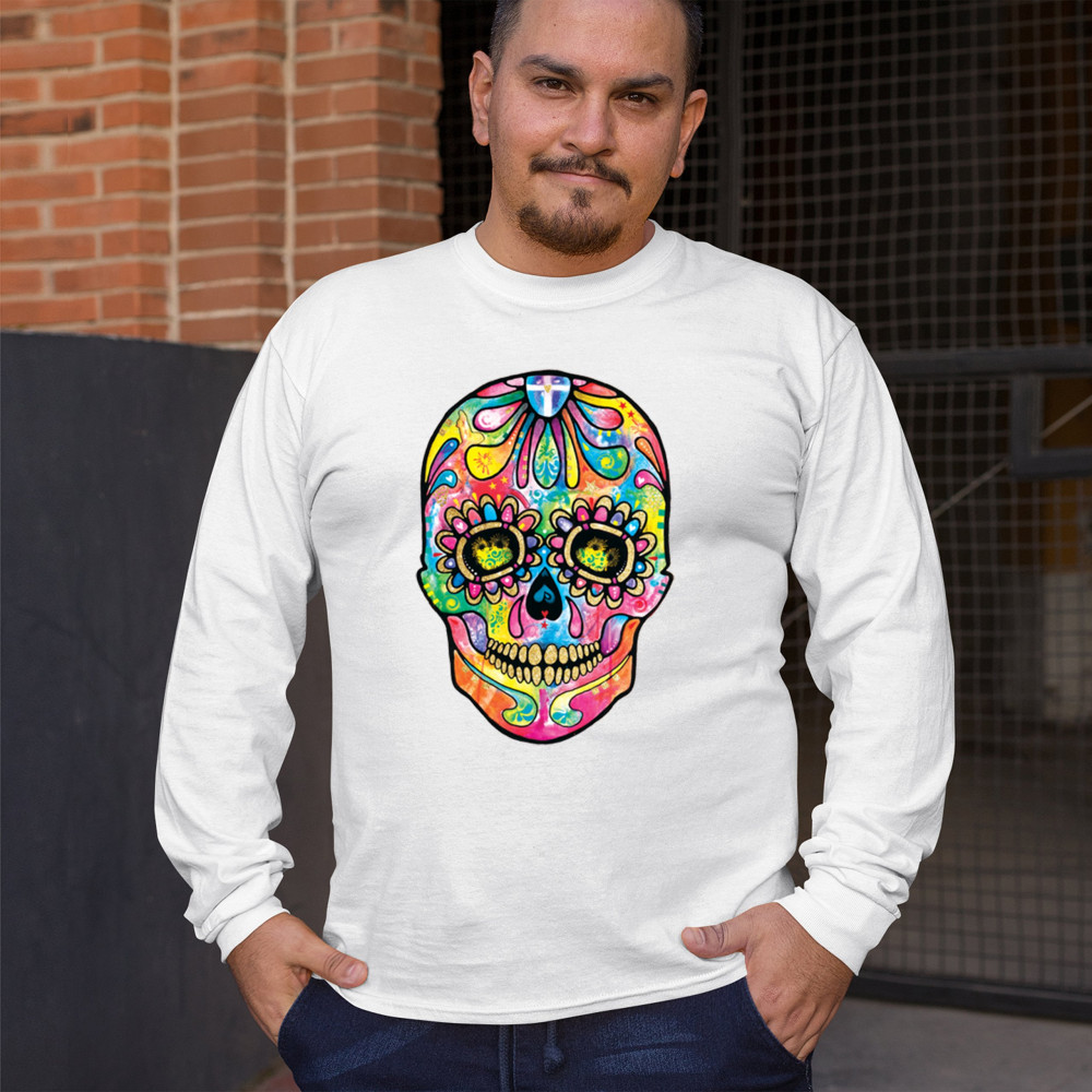 DEAN RUSSO SUGAR SKULL long sleeve t-shirt day of the dead neon calavera white