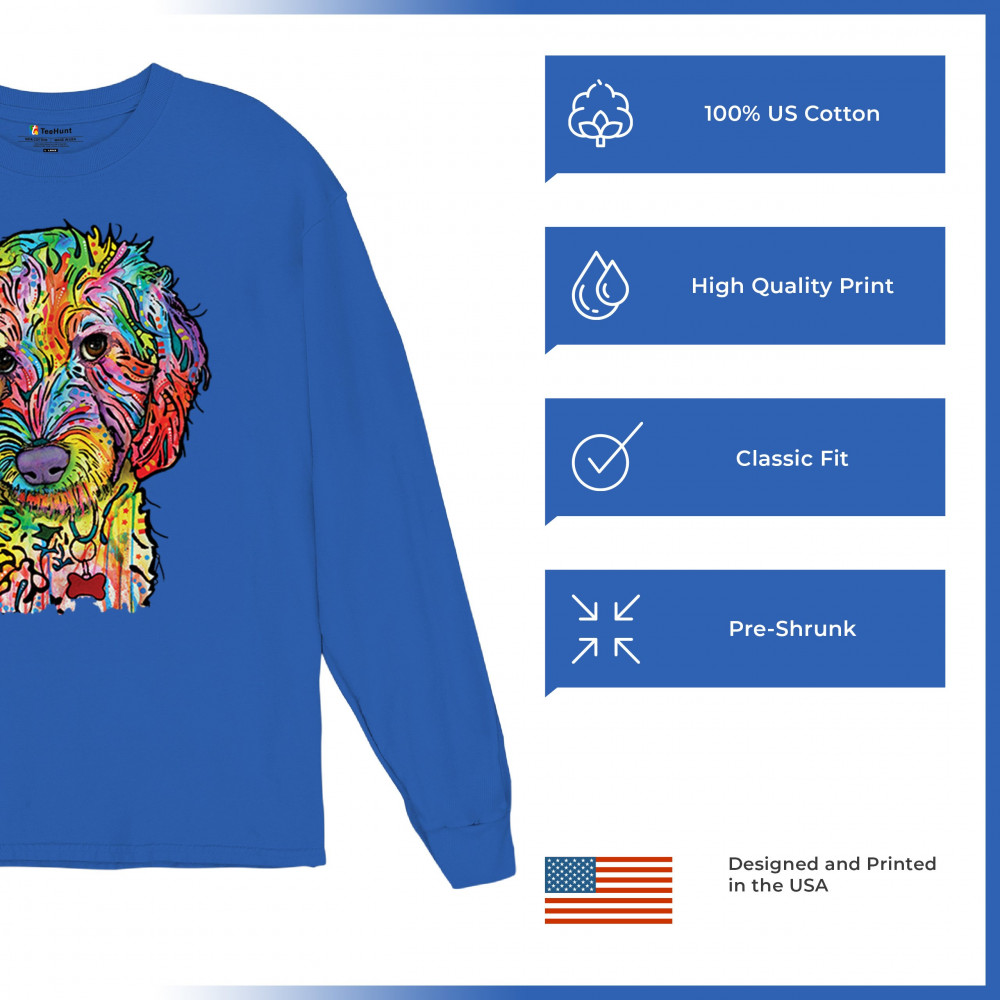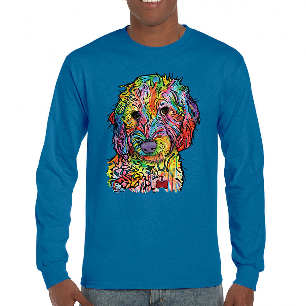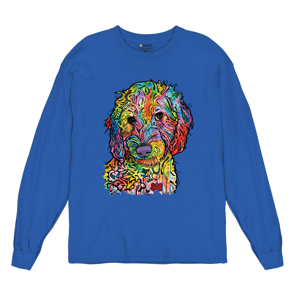 DEAN RUSSO SWEET POODLE long sleeve t-shirt dog pattern puppy adopt pet royal blue