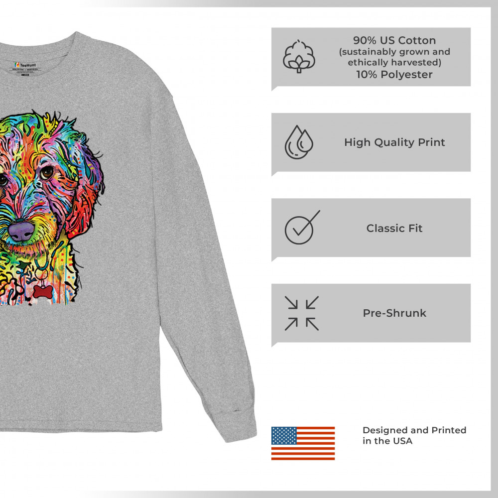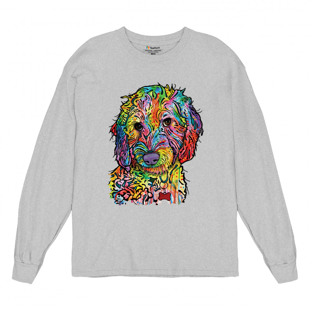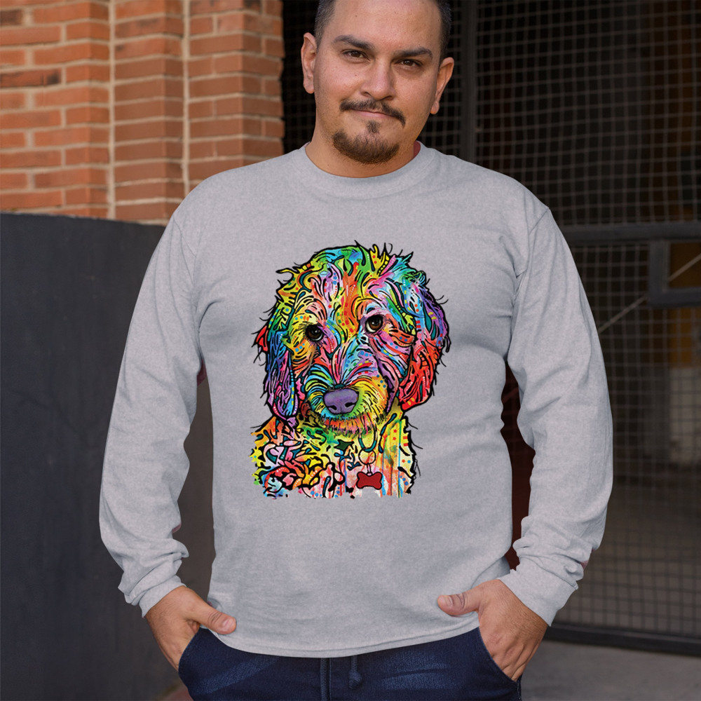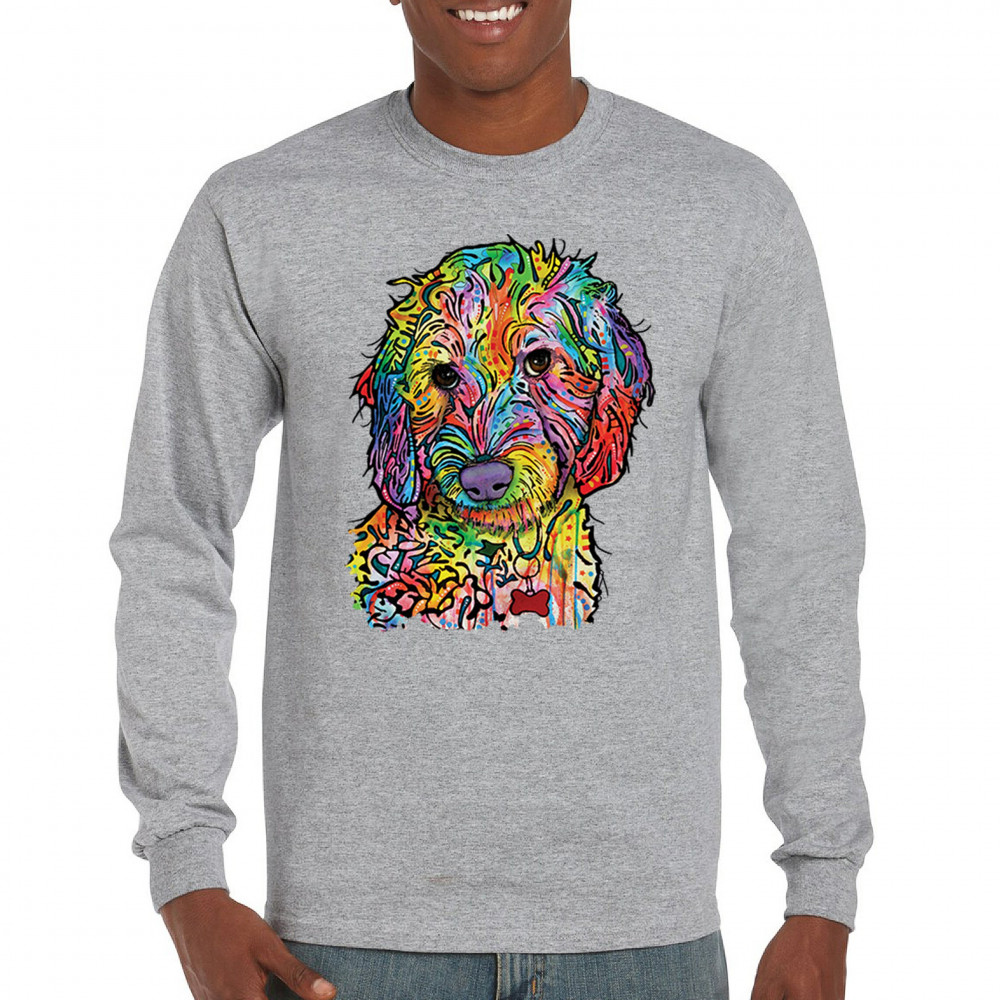DEAN RUSSO SWEET POODLE long sleeve t-shirt dog pattern puppy adopt pet gray