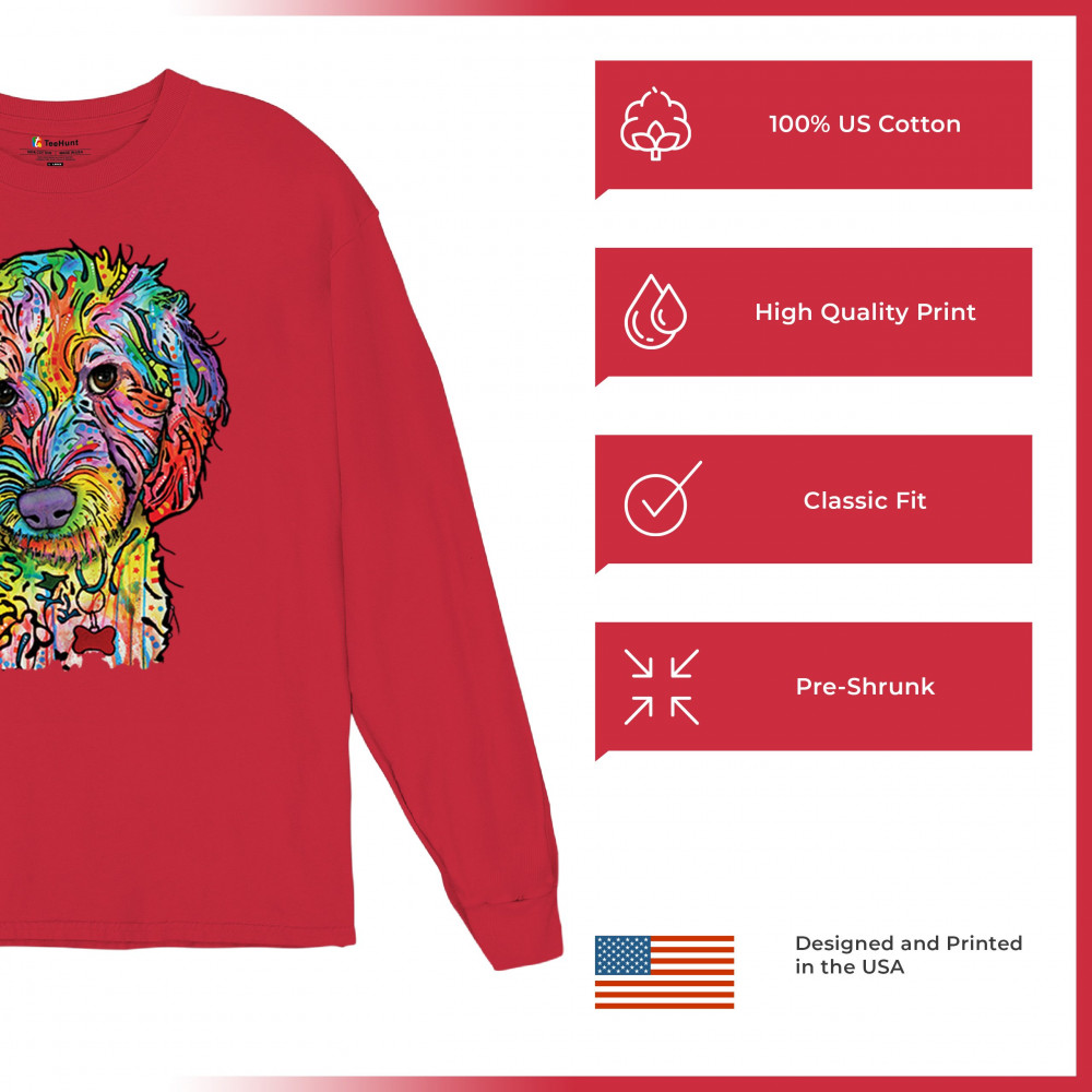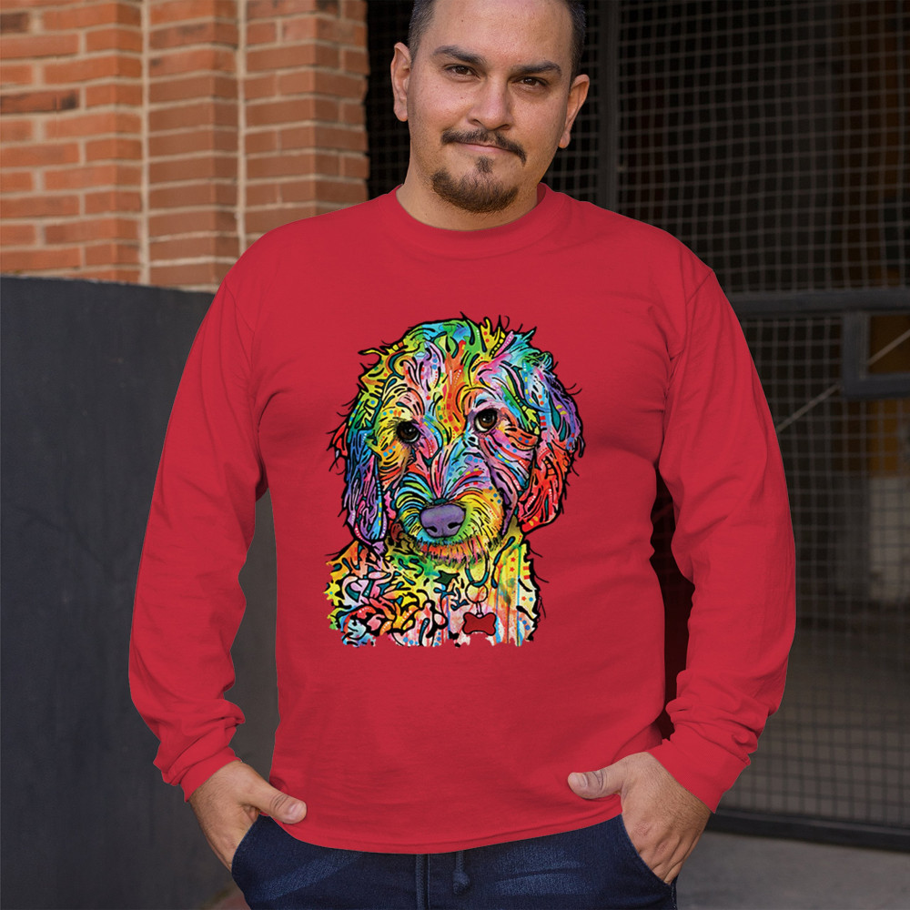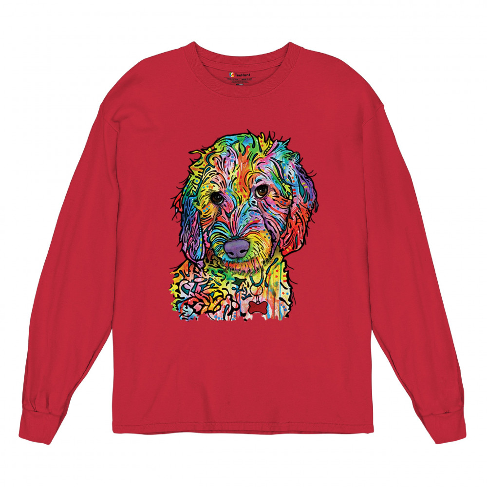 DEAN RUSSO SWEET POODLE long sleeve t-shirt dog pattern puppy adopt pet red