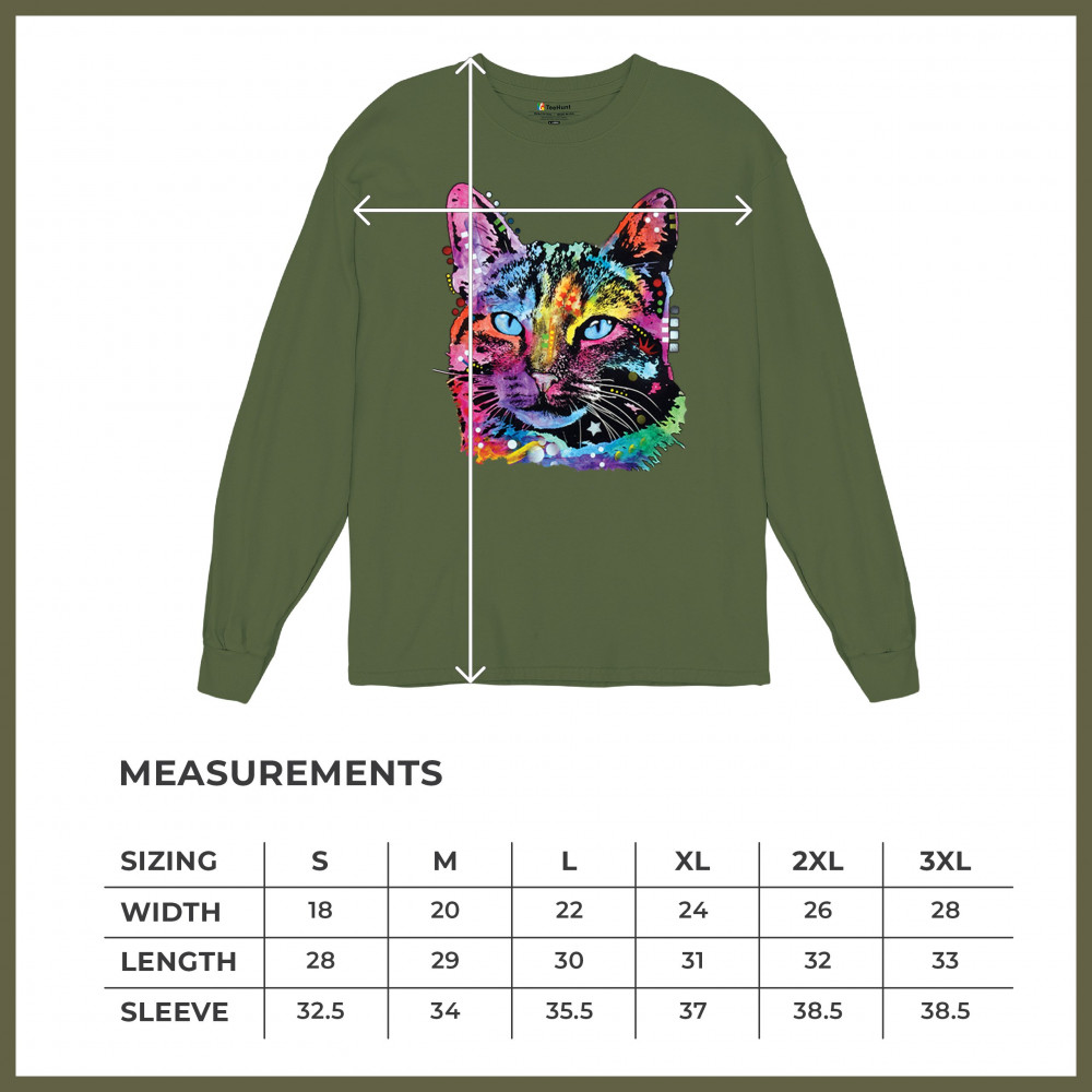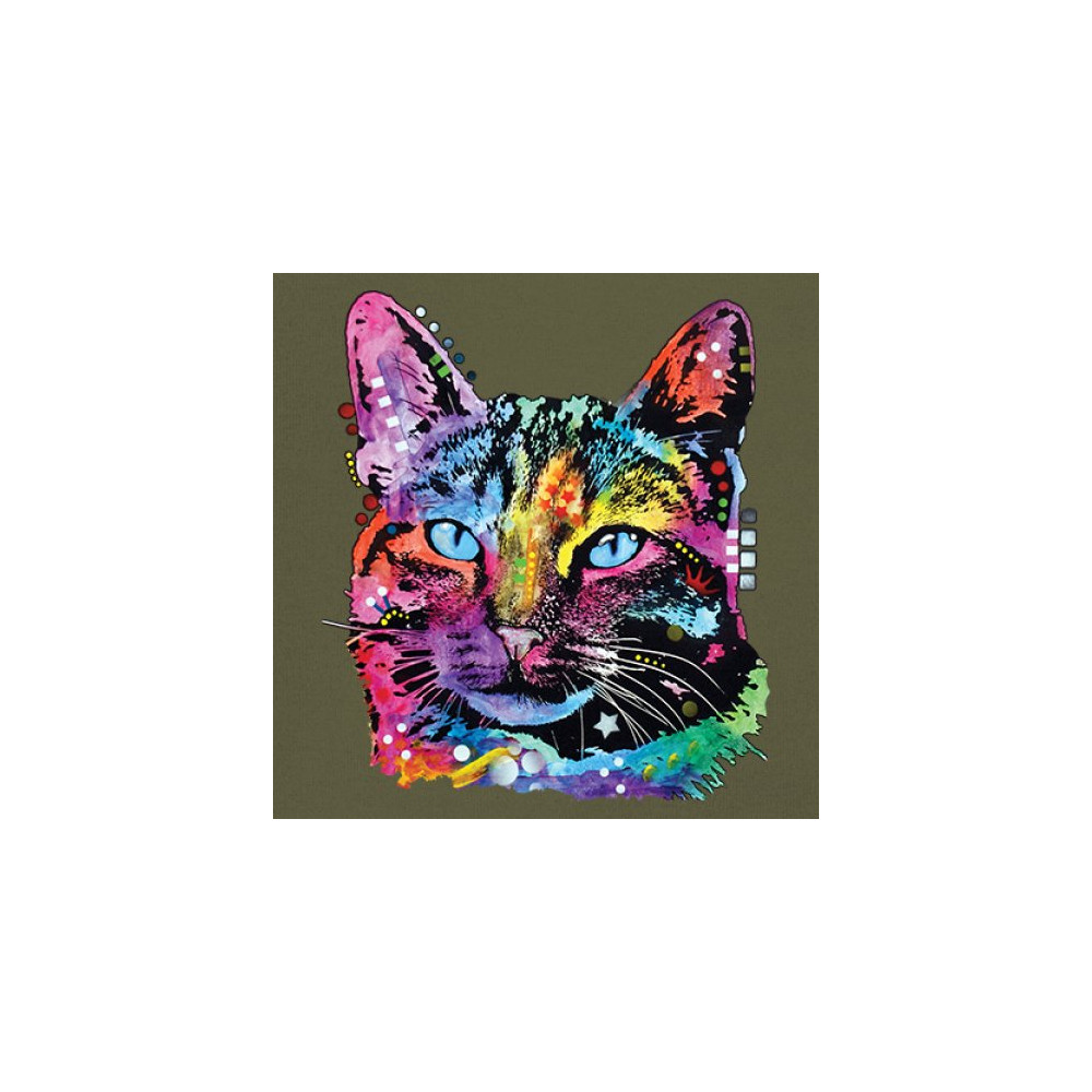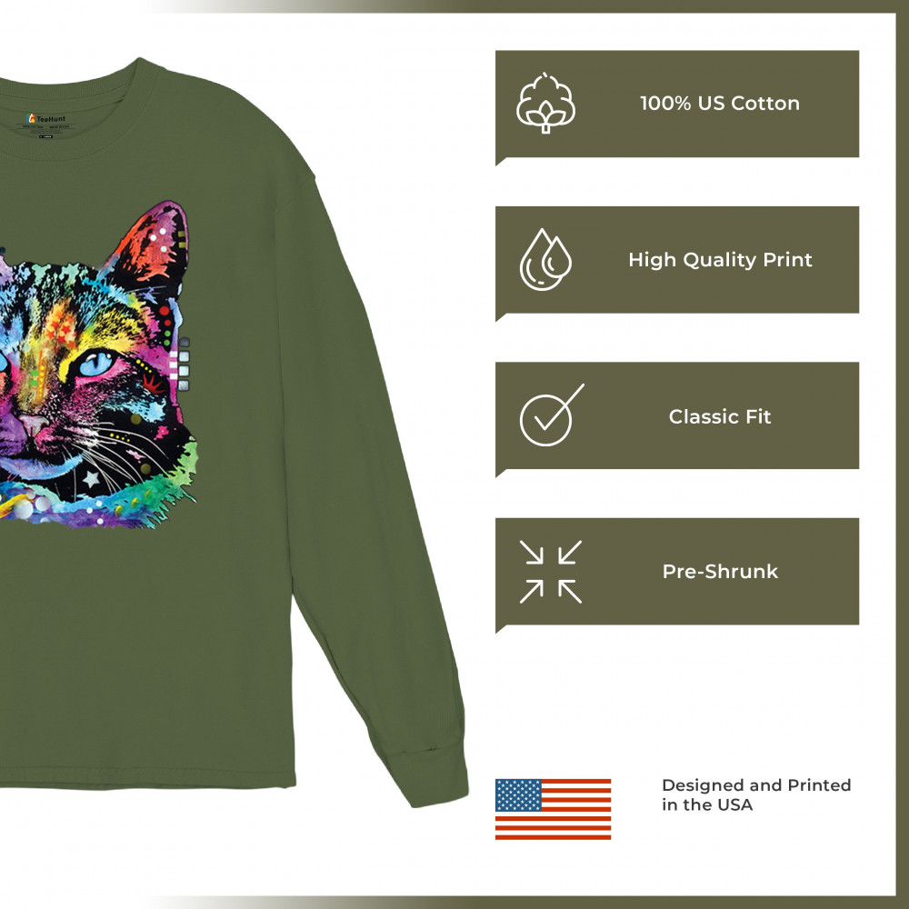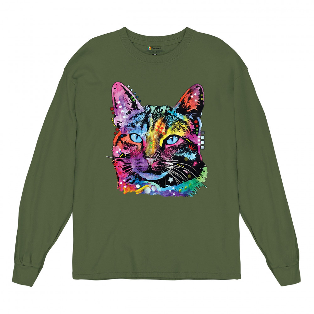 DEAN RUSSO THOUGHTFUL CAT long sleeve t-shirt colorful pet kitten eyes military green