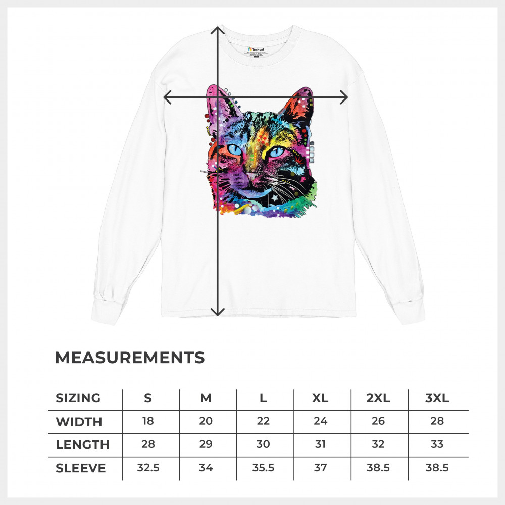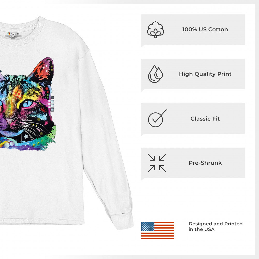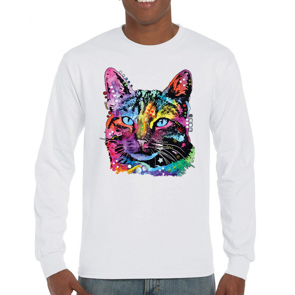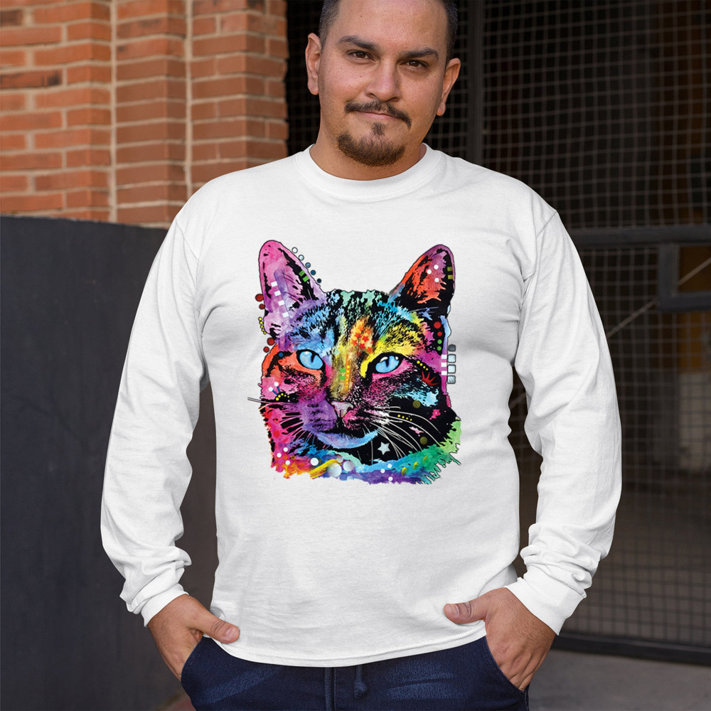 DEAN RUSSO THOUGHTFUL CAT long sleeve t-shirt colorful pet kitten eyes white