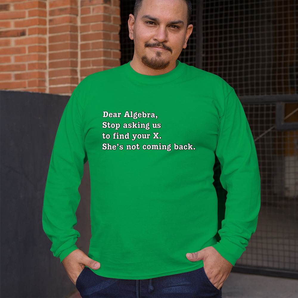 DEAR ALGEBRA STOP ASKING US TO FIND YOUR X long sleeve t-shirt funny humor green