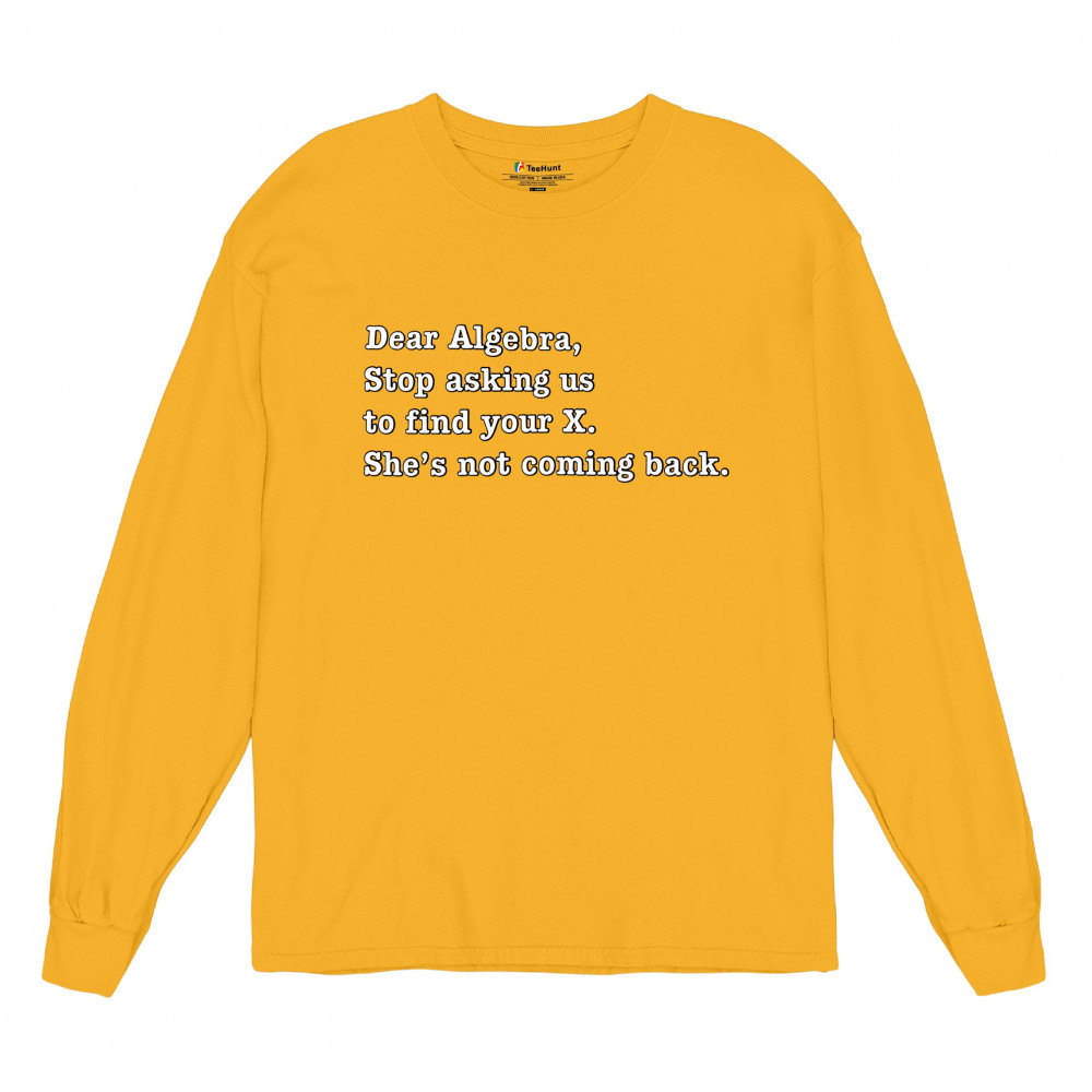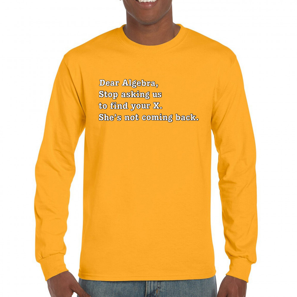 DEAR ALGEBRA STOP ASKING US TO FIND YOUR X long sleeve t-shirt funny humor yellow