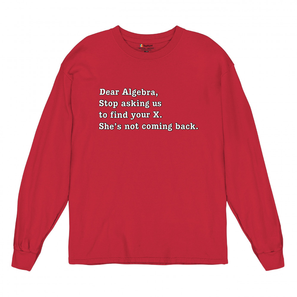 DEAR ALGEBRA STOP ASKING US TO FIND YOUR X long sleeve t-shirt funny humor red
