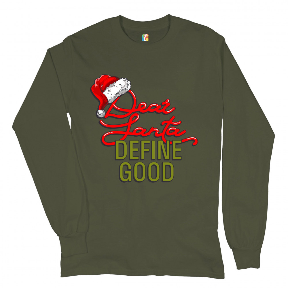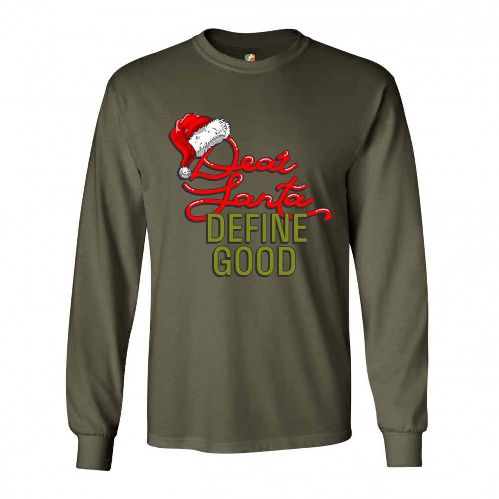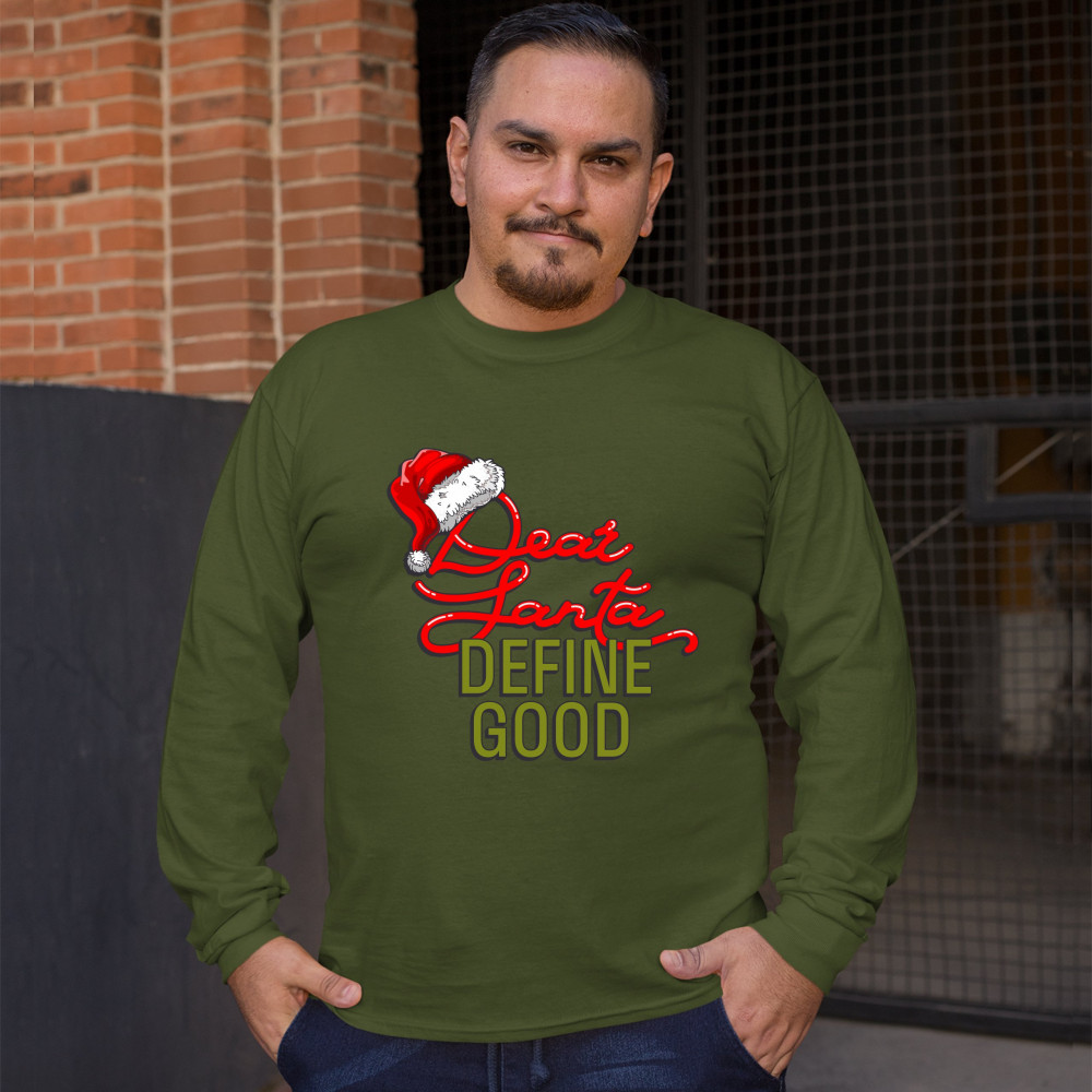 DEAR SANTA DEFINE GOOD long sleeve t-shirt merry christmas naughty or nice military green