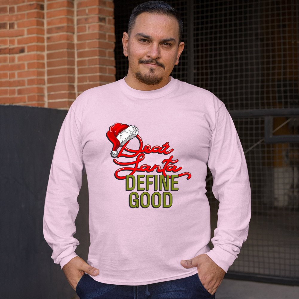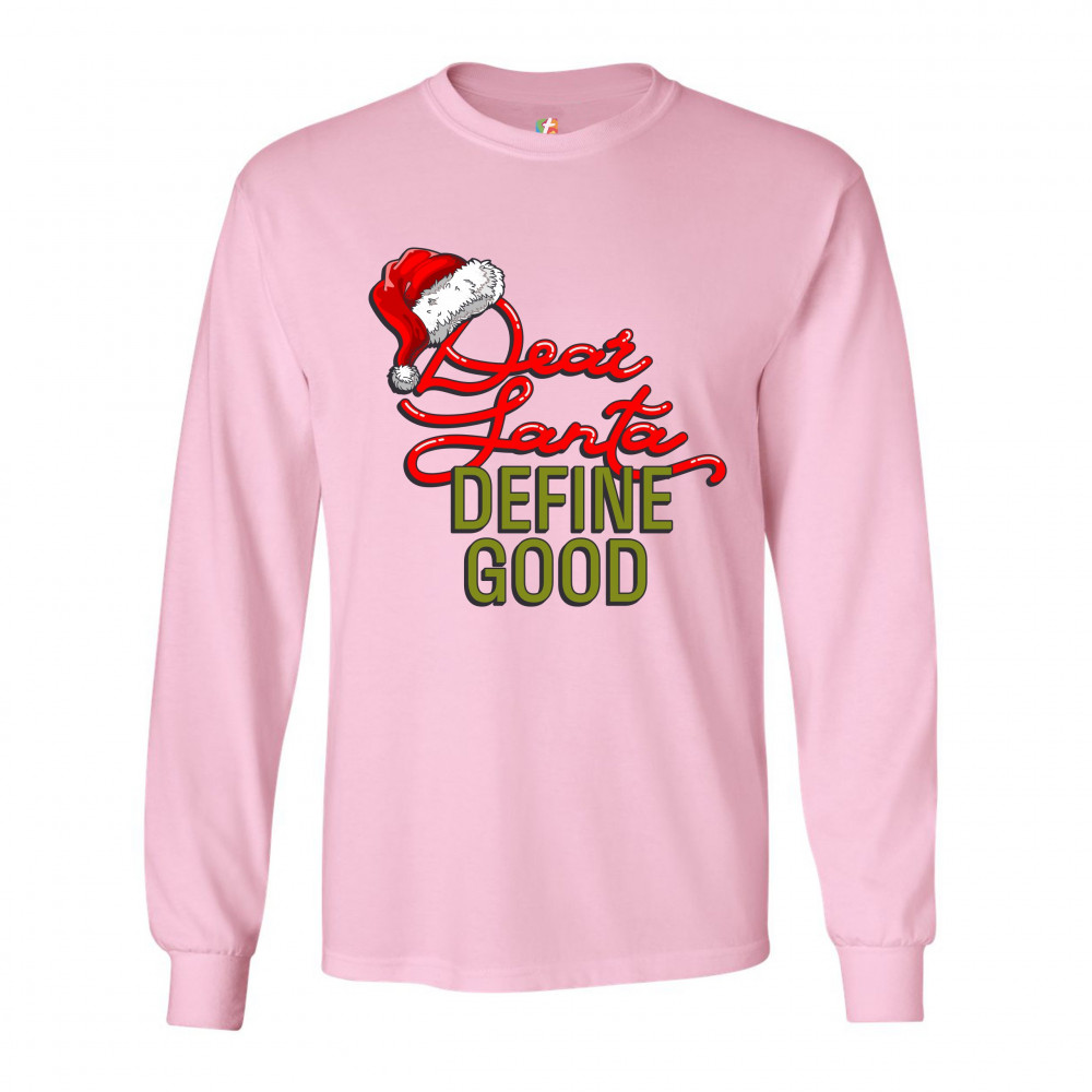 DEAR SANTA DEFINE GOOD long sleeve t-shirt merry christmas naughty or nice pink