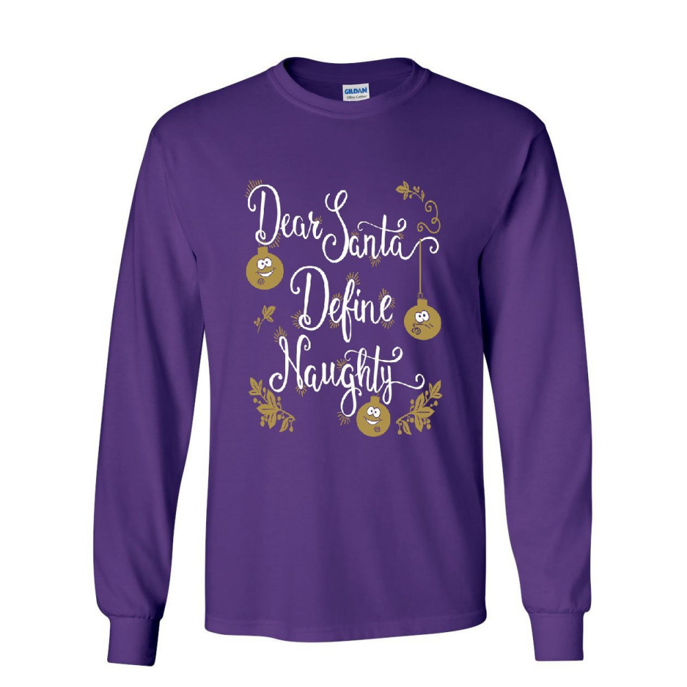 DEAR SANTA DEFINE NAUGHTY long sleeve t-shirt funny christmas xmas holiday tee purple