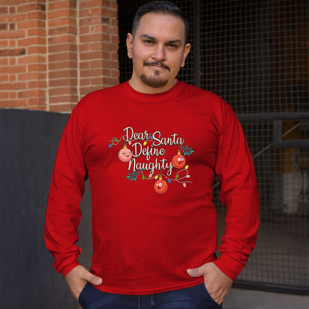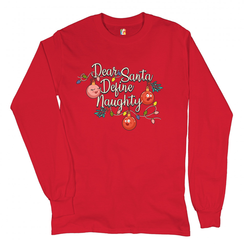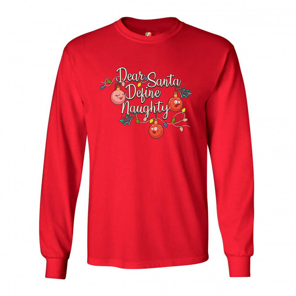 DEAR SANTA DEFINE NAUGHTY long sleeve t-shirt merry christmas naughty or nice red