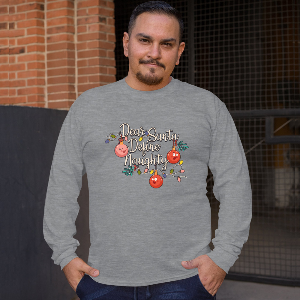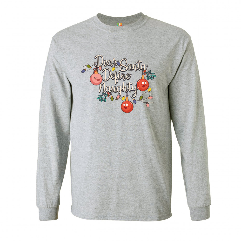DEAR SANTA DEFINE NAUGHTY long sleeve t-shirt merry christmas naughty or nice gray