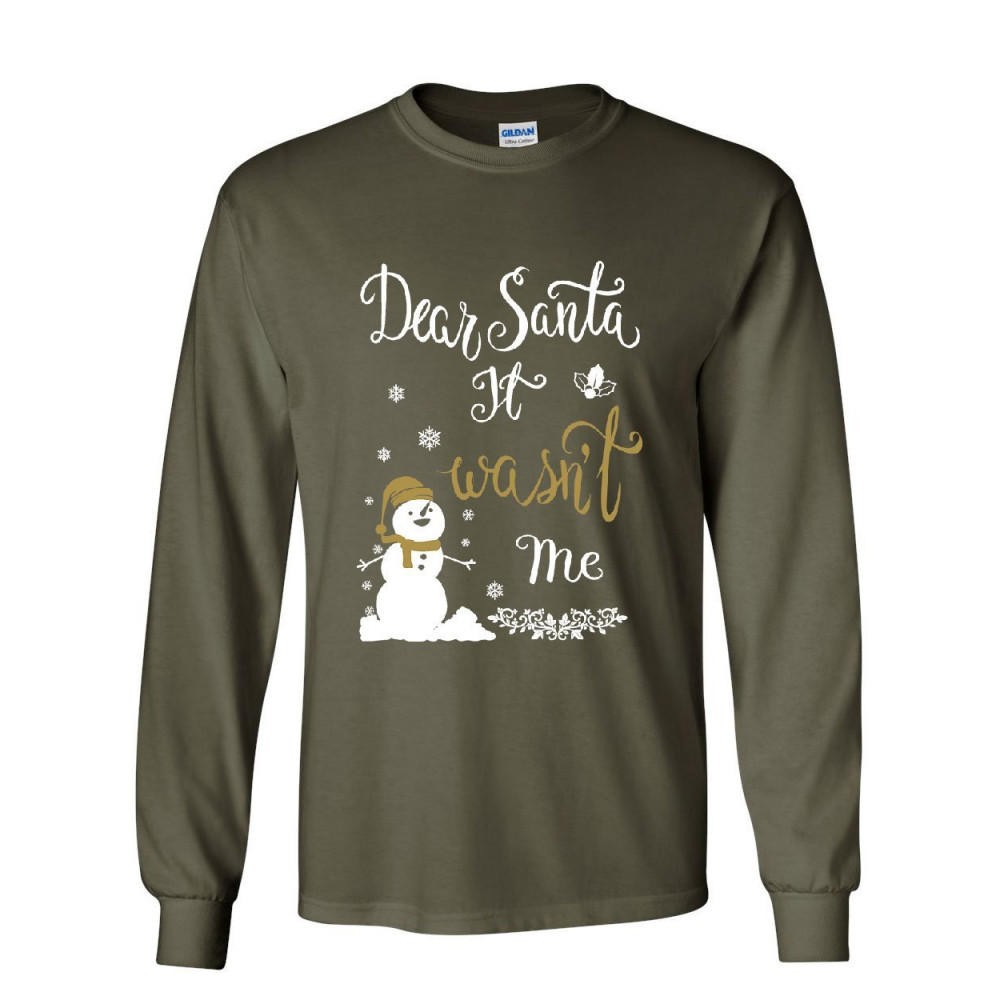 DEAR SANTA IT WASN'T ME long sleeve t-shirt funny naughty christmas eve xmas tee military green