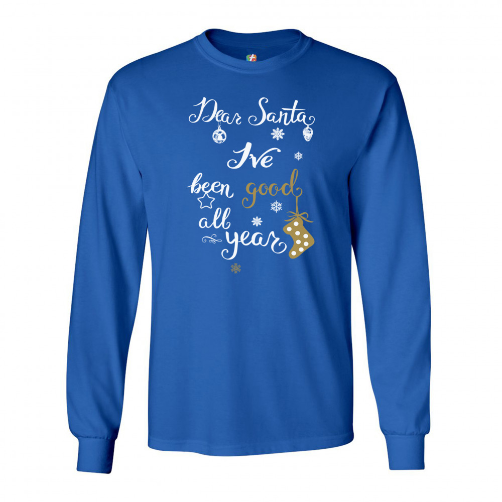DEAR SANTA I'VE BEEN GOOD ALL YEAR long sleeve t-shirt funny christmas xmas royal blue