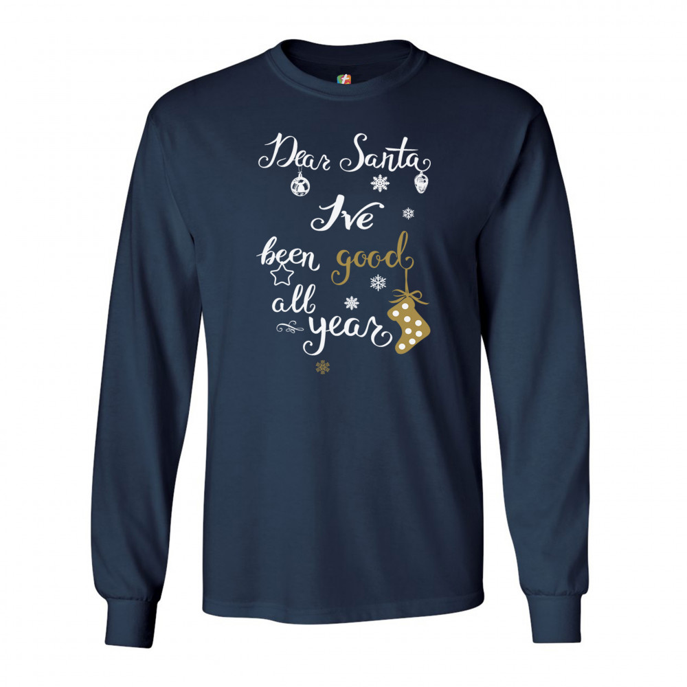 DEAR SANTA I'VE BEEN GOOD ALL YEAR long sleeve t-shirt funny christmas xmas navy blue