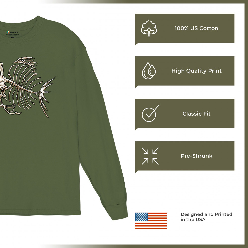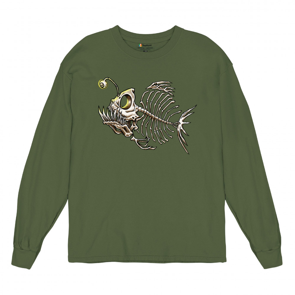This highly detailed angler fish skeleton design features sharp bones, glowing lure eye, and deep sea terror aesthetic. Perfect for horror fans, marine biology lovers, and ocean adventurers, it combines underwater predator vibes with bone art flair. A great fit for Halloween, dive clubs, and dark sea aesthetics.